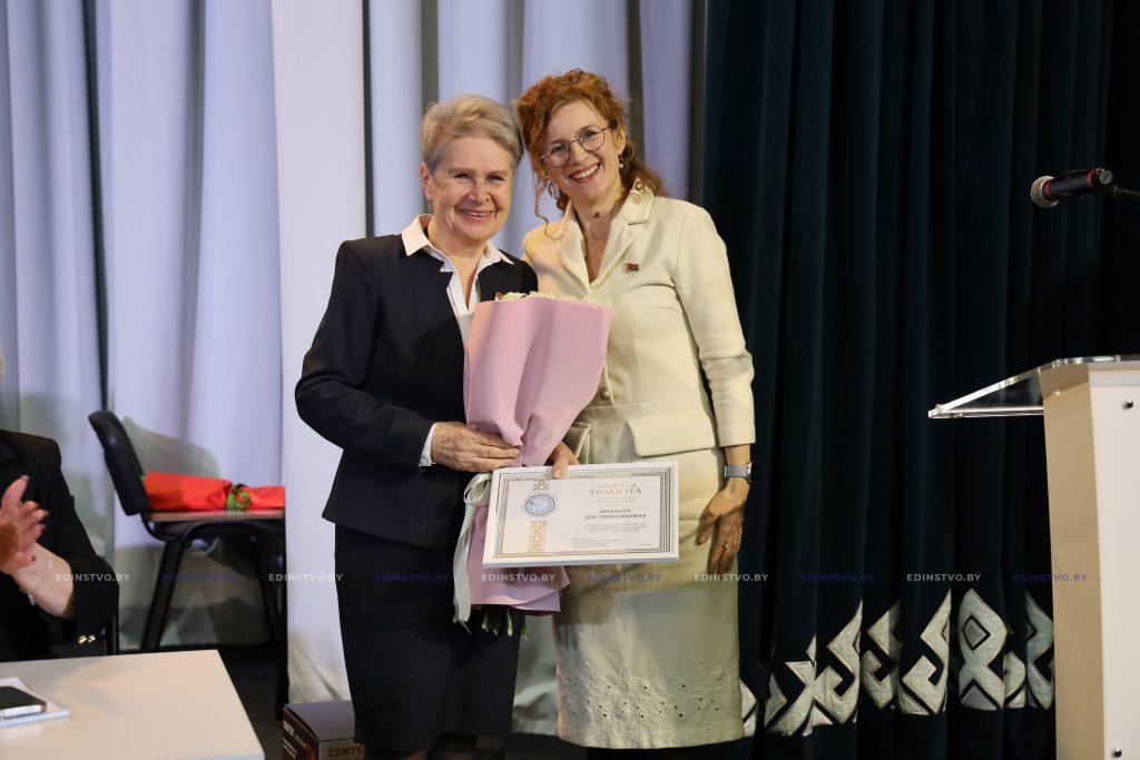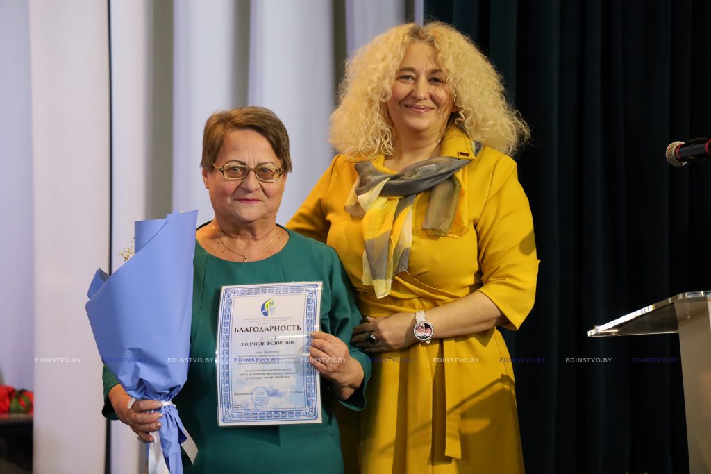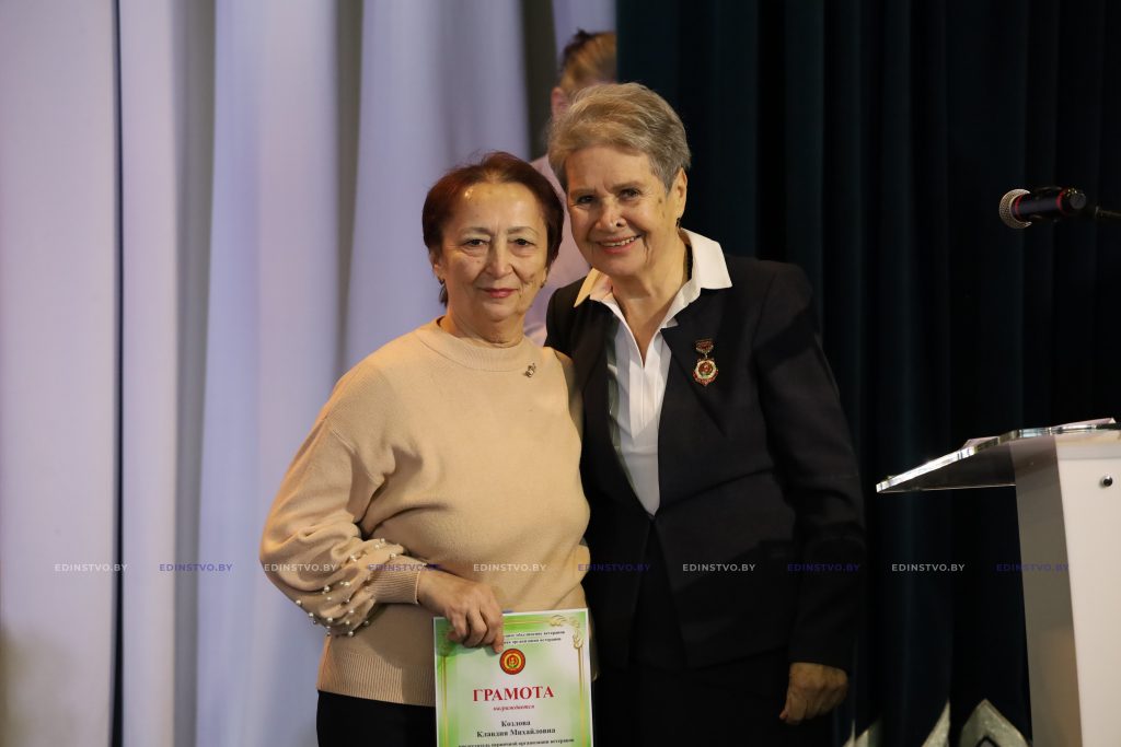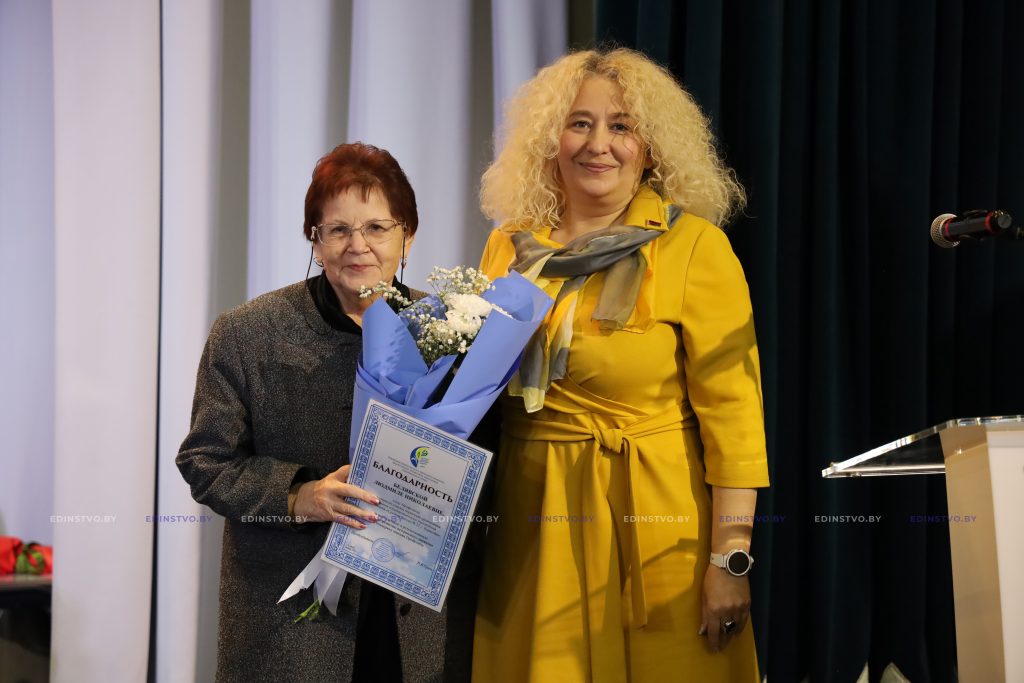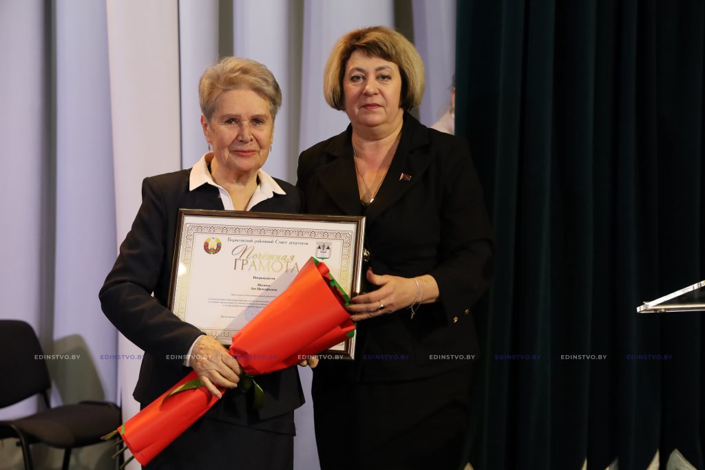 – Борисовский районный совет ветеранов – это не просто общественная организация. В его деятельности заложен мощный идеологический эффект: все, что вы делаете для людей труда и ветеранов войны, напрямую влияет на будущее нашей страны. Своей работой вы подаете пример молодежи и действующему рабочему составу, показывая, с каким уважением необходимо относиться к ветеранам. За это вам огромное спасибо. От имени председателя Борисовского районного исполнительного комитета Николая Карповича хочу передать особые слова благодарности Зое Прокофьевне – за многолетний труд, высокую отдачу и активную гражданскую позицию, – отметила начальник отдела идеологической работы и по делам молодежи райисполкома Татьяна Чуйкова.