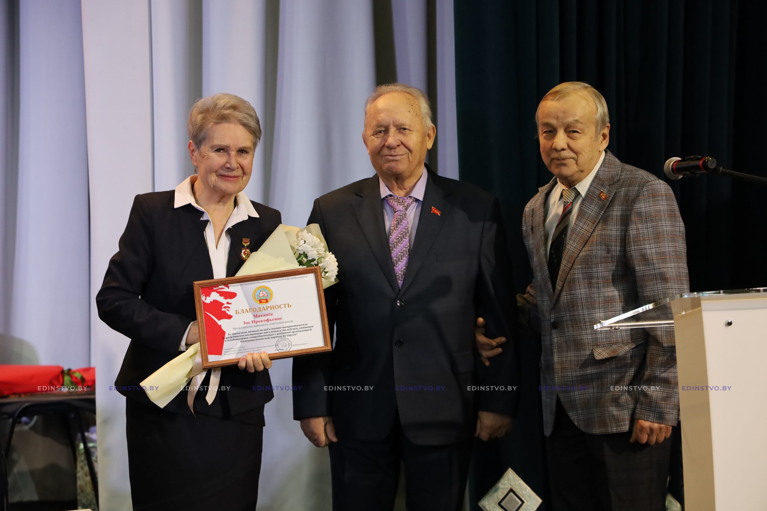 – Борисовский районный совет ветеранов – это не просто общественная организация. В его деятельности заложен мощный идеологический эффект: все, что вы делаете для людей труда и ветеранов войны, напрямую влияет на будущее нашей страны. Своей работой вы подаете пример молодежи и действующему рабочему составу, показывая, с каким уважением необходимо относиться к ветеранам. За это вам огромное спасибо. От имени председателя Борисовского районного исполнительного комитета Николая Карповича хочу передать особые слова благодарности Зое Прокофьевне – за многолетний труд, высокую отдачу и активную гражданскую позицию, – отметила начальник отдела идеологической работы и по делам молодежи райисполкома Татьяна Чуйкова.
