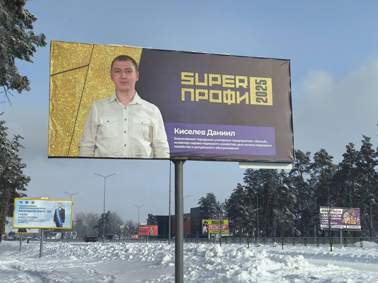 В Борисове появились свежие билборды, на них — Даниил Киселев, который в 2025 году буквально взорвал республиканский конкурс, став победителем профессионального мастерства «SUPERПрофи — 2025»! в номинации «Коммунально-бытовые предприятия».