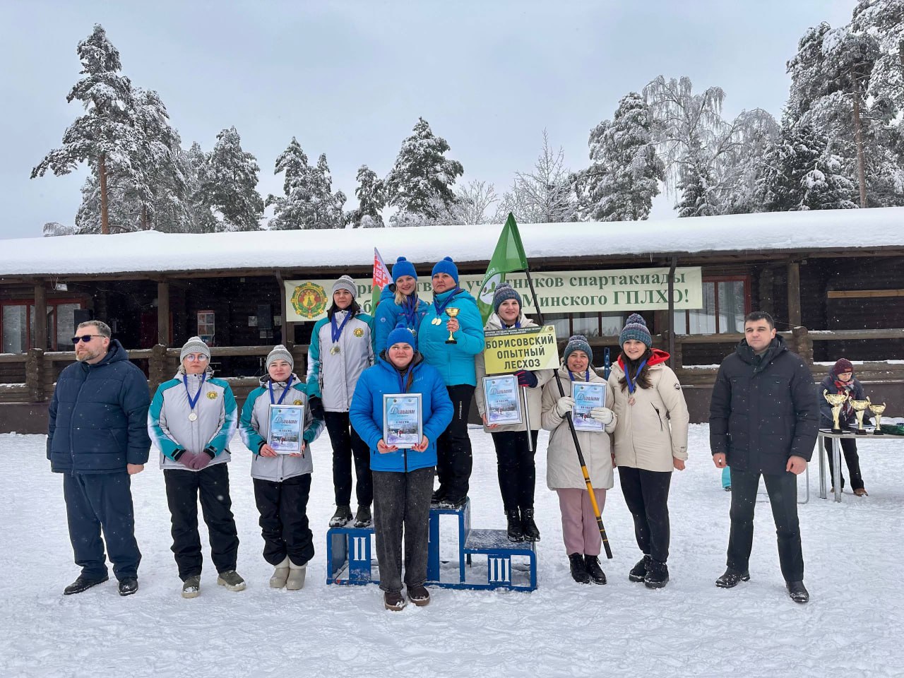 Команда Борисовского опытного лесхоза заняла 3 место в лыжной эстафете, а в индивидуальной лыжной гонке в I группе (женщины 18-29 лет) серебро взяла представительница команды Маргарита Гуня.