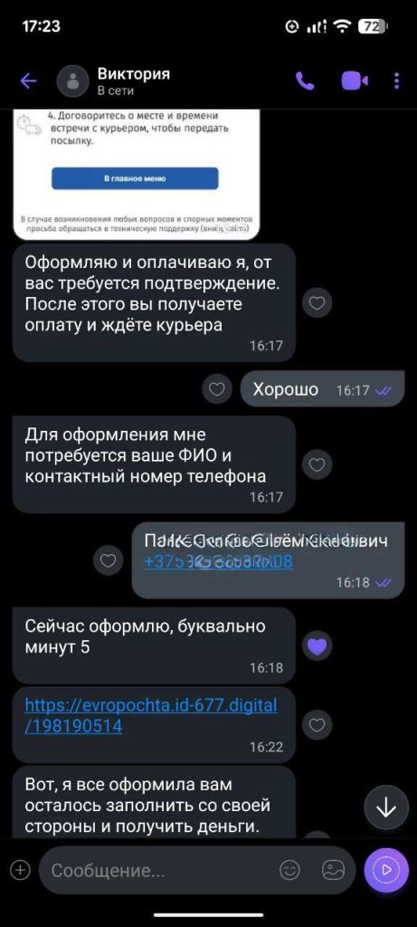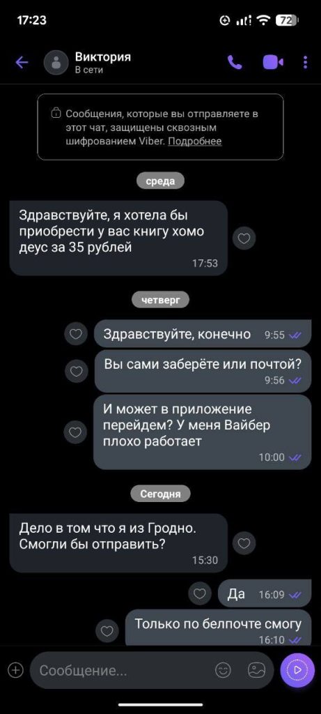 Житель Борисова решил продать книгу на одной из торговых площадок в интернете. Практически сразу же на его объявление откликнулась покупательница по имени Виктория.