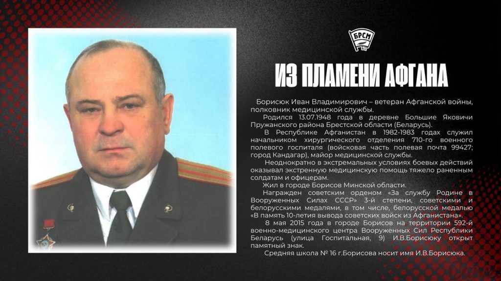 Проект посвящен памяти героев, которые воевали в Афганистане. Первый рассказ о полковнике медицинской службы, чье имя носит СШ №16 Борисова, Иване Борисюке.