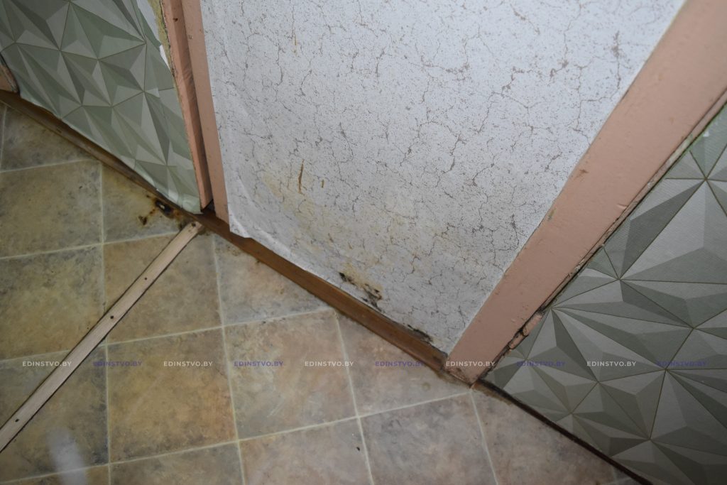 Жителей же дома напротив беспокоит как температура в квартирах, так и повышенная влажность, из-за которой на стенах появляется плесень. Сыро не только в помещениях на первом этаже, но даже на третьем.
