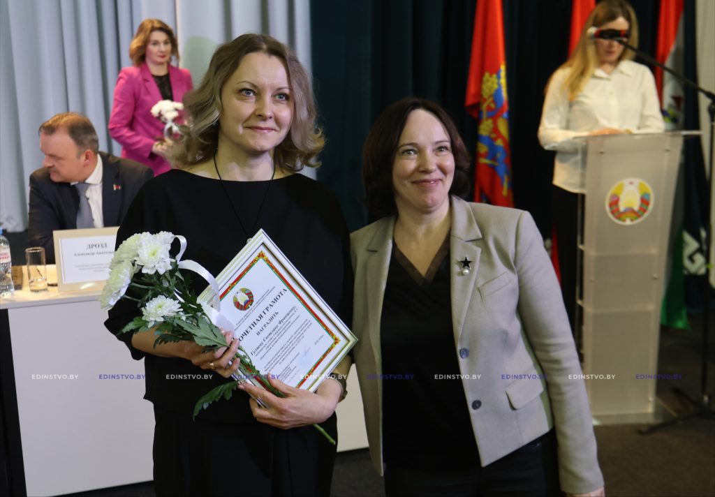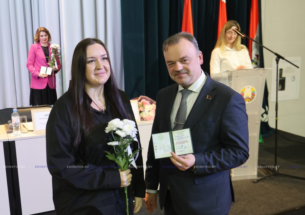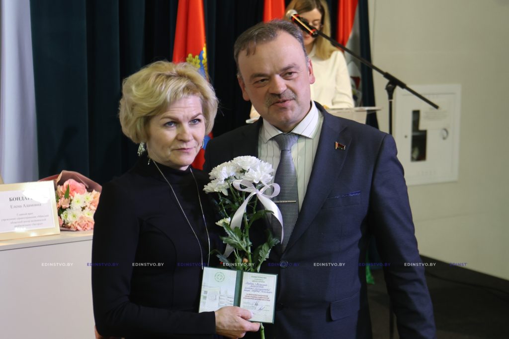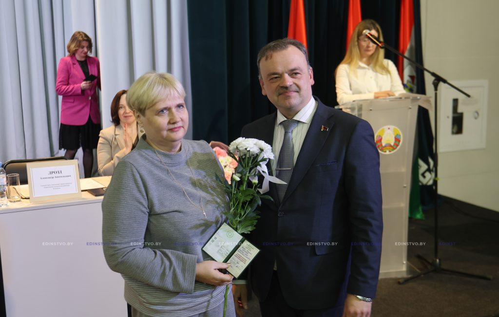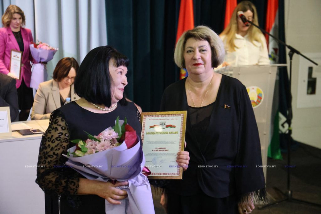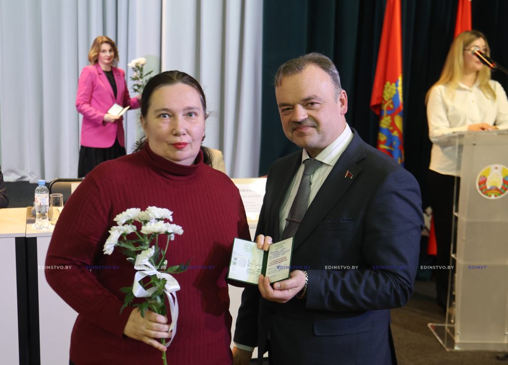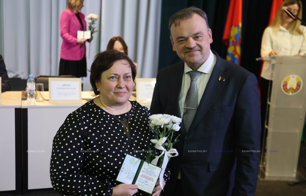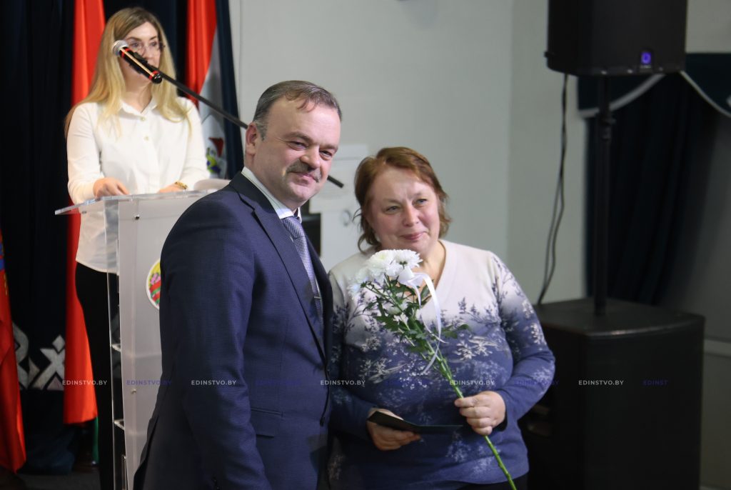К поздравлениям присоединились Егор Мандрик и Лилия Чеча. Из их рук медицинские работники получили награды Борисовского райисполкома и Борисовского районного Совета депутатов.