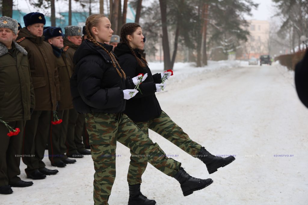 В завершение митинга военнослужащие прошли торжественным маршем. Памятное мероприятие продолжилось концертной программой, посвященной подвигу воинов-интернационалистов и сохранению исторической памяти. Участие в ней в составе образцового ансамбля народной песни «Медуница» приняли выпускники средней школы № 7 г. Борисова, студенты Минского государственного музыкального колледжа имени М.И. Глинки Анастасия Куртова (учащаяся военно-патриотического класса, член команды «Патриот») и Степан Бровков.
