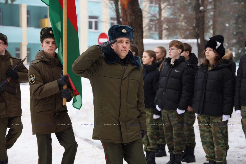 Несли почетный караул у памятника, а также принимали участие в церемонии возложения цветов члены военно-патриотического клуба «Юный танкист» и учащиеся военно-патриотических классов подшефной средней школы № 7 г. Борисова.