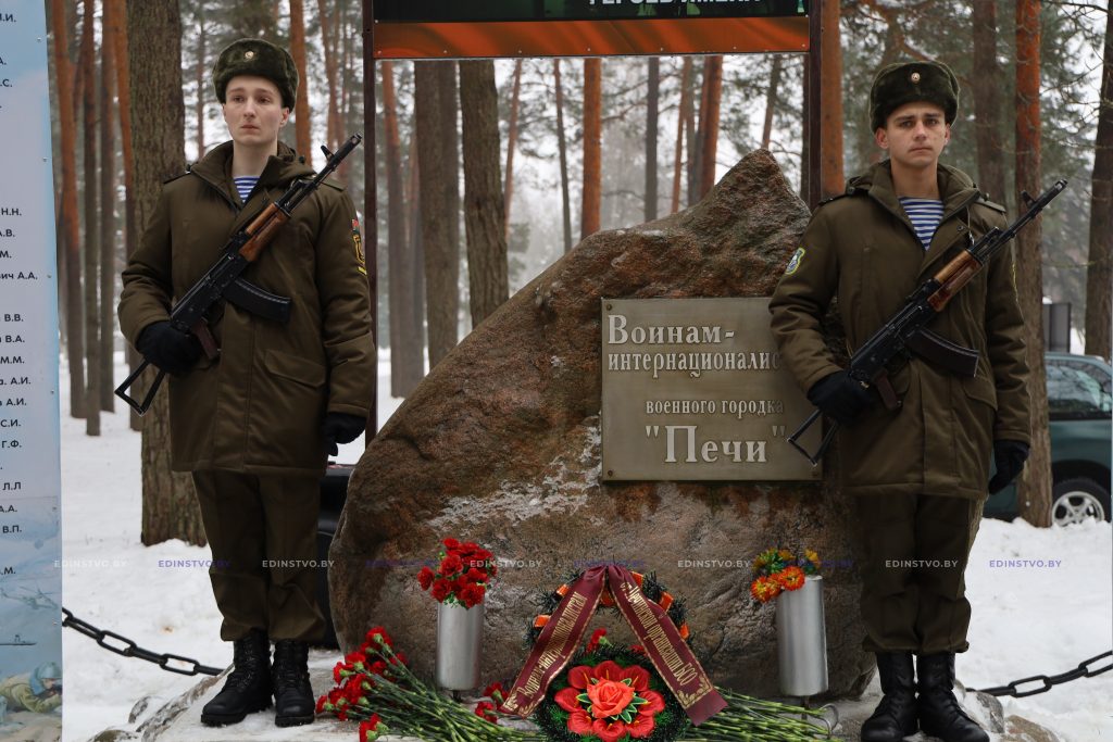 – Сегодня мы вспоминаем о трагической и героической странице нашей истории, вспоминаем участников вооруженных конфликтов, мужественно и честно выполнявших свой интернациональный долг за пределами Советского Союза. Солдаты великой страны принимали участие более чем в 20 локальных войнах и конфликтах. Это были разные страны, разные годы и разные поколения. Но боль тех, кто терял своих близких товарищей, кто не дождался домой родных людей, одинакова велика. Беларусь всегда будет помнить солдат и офицеров, которые прошли через суровые испытания, проявляя самоотверженность и отвагу в горячих точках планеты. Тех, кто принял на себя удар распространявшегося в те годы международного терроризма. Тридцать семь лет назад завершилась военная операция Ограниченного контингента советских войск в Афганистане. За время войны через горнило «Афгана» прошло более полумиллиона советских солдат. Число погибших составило свыше четырнадцати тысяч человек. Около двадцати девяти тысяч уроженцев Беларуси выполняли интернациональный долг в той далекой стране, более семисот из них погибли, храня верность присяге и исполняя свой воинский долг. Четверо уроженцев белорусской земли были удостоены высокого звания Герой Советского Союза. Сотни наших соотечественников не возвратились домой из Афганистана и других горячих точек. Имена погибших бессмертны, мы будем помнить о них как о Героях! – обратился к присутствующим начальник 72 гвардейского объединенного учебного центра подготовки прапорщиков и младших специалистов гвардии полковник Александр Агейчик. – Беларусь всегда будет помнить всех, кто прошел через суровые испытания, проявляя самоотверженность и отвагу в горячих точках планеты. Тех, кто принял на себя удар распространявшегося в те годы международного терроризма. Всем вам, кто прошел горнило войны, всем, кто ждал и верил, всем, кто помнит и хранит память о тех событиях, хочу искренне пожелать крепкого здоровья, мира, благополучия, спокойствия и уверенности в завтрашнем дне, новых свершений в труде на благо сильной и процветающей Беларуси.