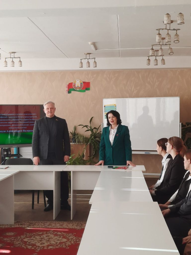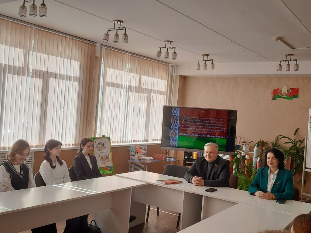 Депутат Палаты представителей, заместитель председателя Постоянной комиссии по здравоохранению, физической культуре, семейной и молодежной политике Александр Валерьевич Шипуло в рамках работы в избирательном округе провел встречу с учащимися педагогического отделения УО «Борисовский государственный колледж».