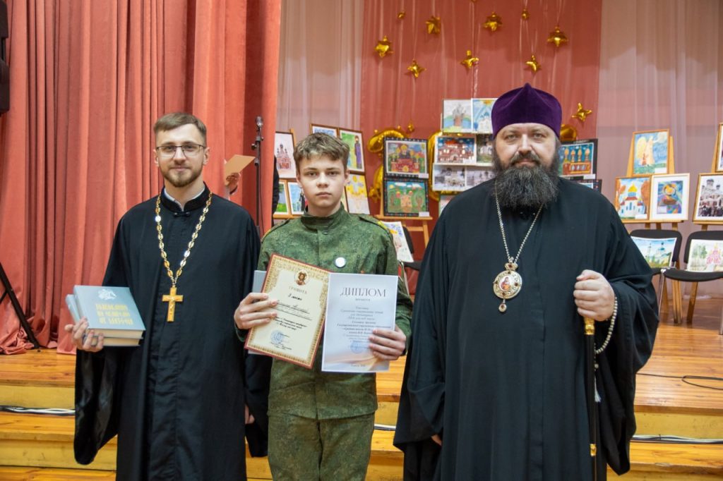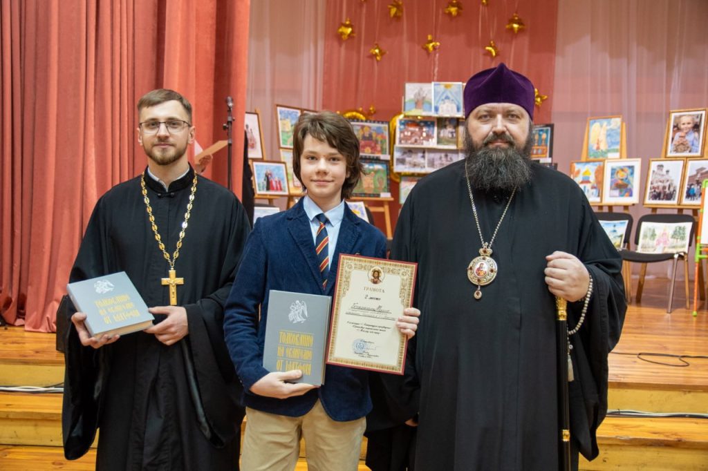 Епископ Борисовский и Марьиногорский Амвросий совместно с руководителем епархиального отдела образования и катехизации иереем Вадимом Свириденко наградили победителей и участников дипломами и грамотами.