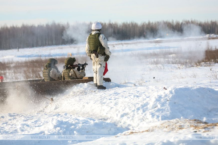 «Сегодня у нас проходят контрольные занятия по огневой подготовке. Вместе с военнослужащими 120-й отдельной гвардейской механизированной бригады работают бойцы 103-й Витебской воздушно-десантной бригады. Мы выполняем упражнения по стрельбе из автоматов и гранатометов. Также на боевой технике проводятся контрольные стрельбы. Все настроены на достижение отличных результатов. Погода вносит свои коррективы, сейчас довольно холодно, и военнослужащим трудно из-за непогоды, но они справляются на отлично и выполняют нормативы, несмотря на условия. Военнослужащие обеспечены всем необходимым для работы в зимних условиях», — отметил заместитель командира роты по идеологической подготовке 120-й мехбригады Илья Грищенко.