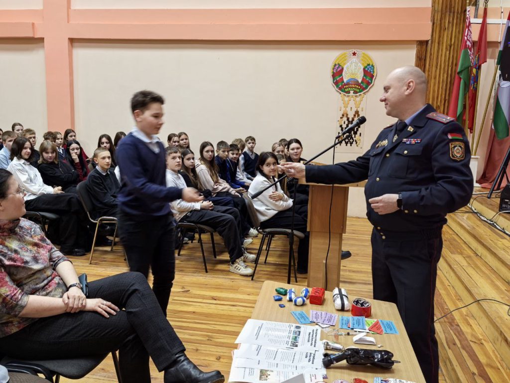 18 февраля в рамках акции «Дружим с Законом» в ГУО «Средняя школа №24г. Борисова» состоялась встреча учащихся 7-9 классов с Глушенем Константином Владимировичем, начальником Отдела по наркоконтролю и противодействию торговле людьми криминальной милиции Борисовского района, и Корзун Александрой Сергеевной, заведующей психоневрологическим диспансером УЗ «Борисовская ЦРБ».