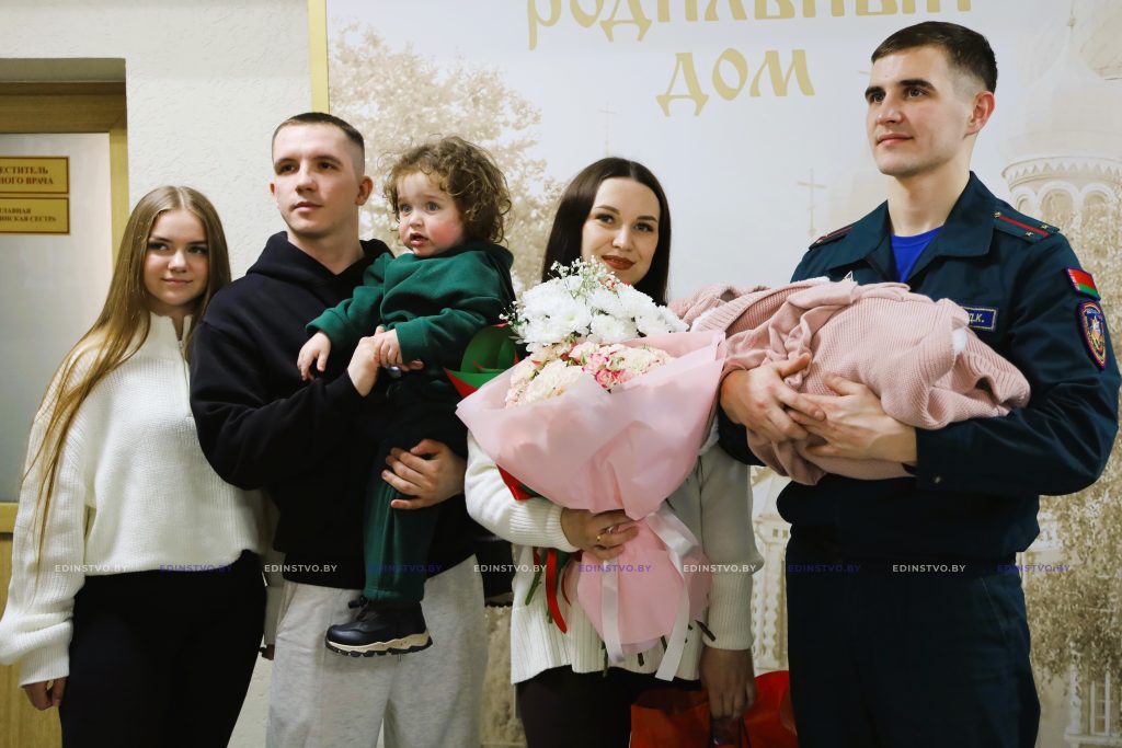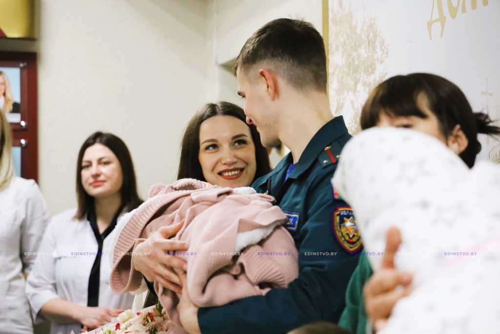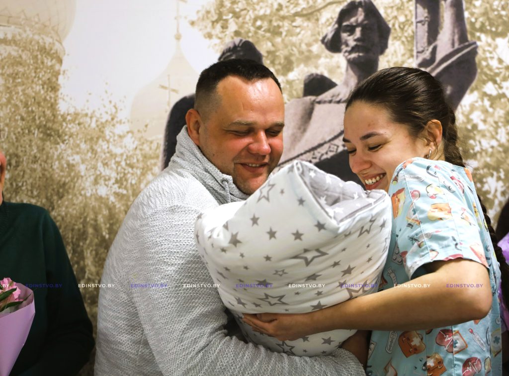– Дочка родилась ростом 50 сантиметров, вес – 3 килограмма 255 граммов. Назвали ее Валерией. Это первый ребенок в нашей семье. Какой я буду мамой – пока сложно сказать, но думаю, что справлюсь. Наверное, будет нелегко, но уверена, что все получится. Мы с мужем очень рады, что выписка прошла в такой торжественной обстановке. Это было неожиданно и очень приятно – настоящий праздник. Отдельное спасибо хочется выразить коллективу Борисовского родильного дома: от пребывания в учреждении остались только положительные эмоции, – отметила молодая мама. – Я очень рада, что 2026 год объявлен Годом белорусской женщины. Думаю, он будет продуктивным, богатым на события и инициативы. Уверена, что в этом году особое внимание будет уделено женщинам, их профессиональной самореализации, вопросам материнства. Мы только недавно приобрели статус молодой семьи, но уже успели заметить, что в нашей стране поддержка организована на действительно высоком уровне. Чувствуется внимание и забота. В Беларуси созданы максимально комфортные условия для того, чтобы создавать семью, продолжать род и растить здоровых, счастливых детей.