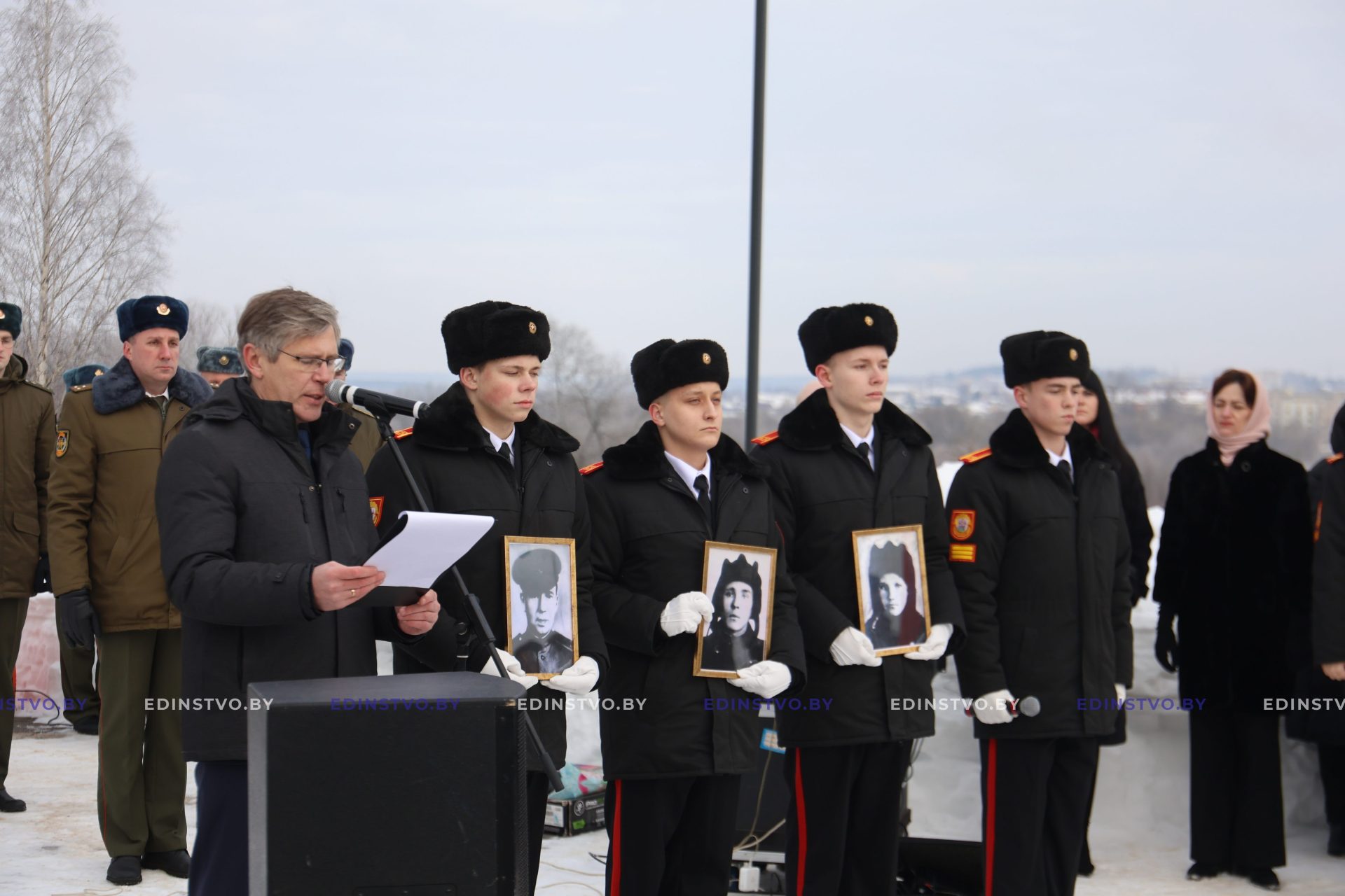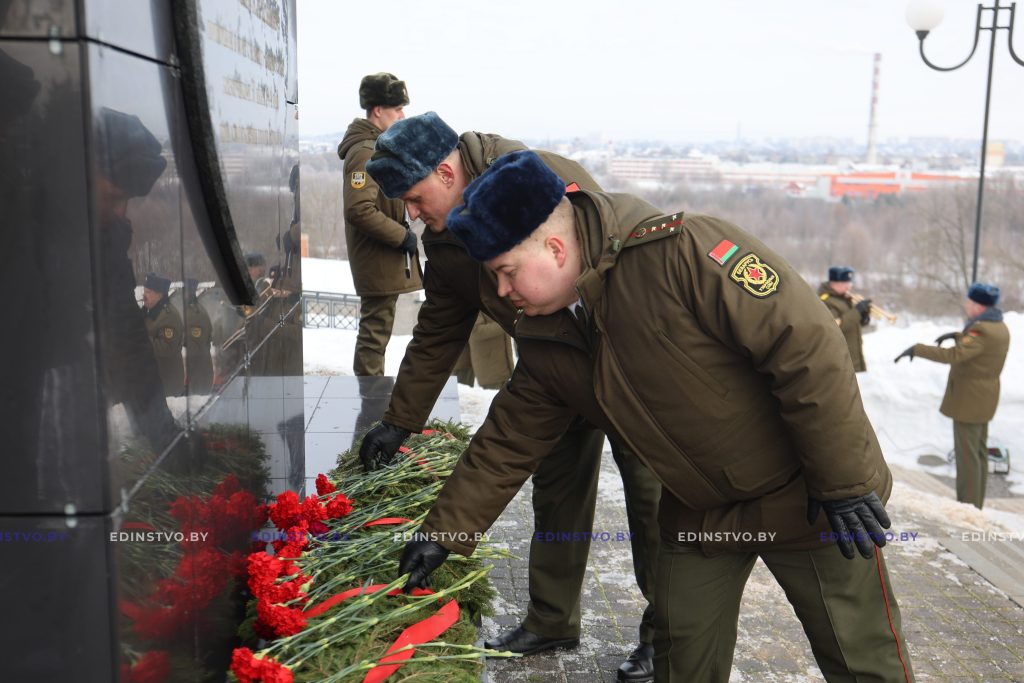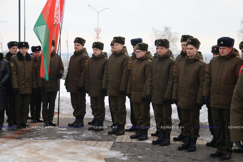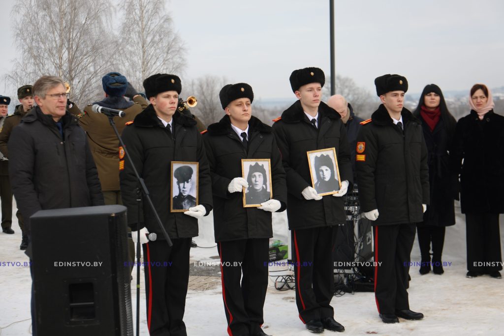 Воспитанники Борисовского кадетского училища Минской области напомнили присутствовавшим о подвиге, совершенном членами героического танкового экипажа, вспомнили каждого героя поименно.