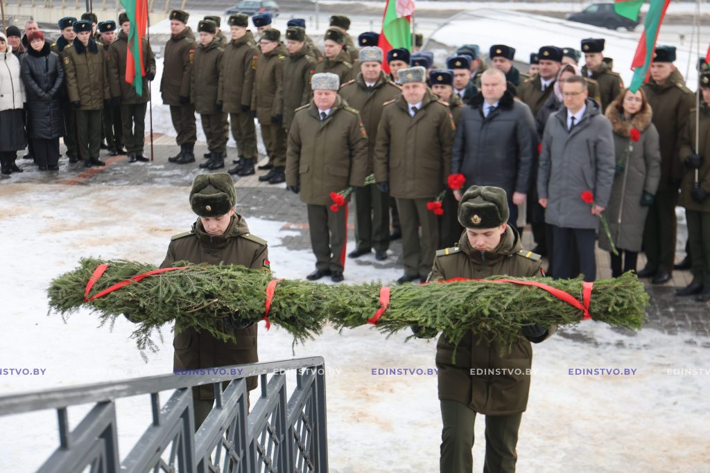Сегодня, в День защитников Отечества и Вооруженных Сил Республики Беларусь, на Борисовщине проходят торжественные мероприятия. Церемония возложения цветов к памятнику танкового экипажа Павла Рака прошла с участием председателя райисполкома Николая Карповича, командующего войсками Северо-западного оперативного командования Александра Баса, руководителей и представителей силовых структур, членов трудовых коллективов, активистов общественных объединений и политических партий, молодежи.