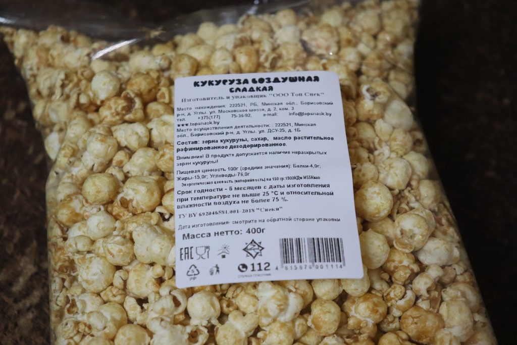 В Борисовском районе реализуется творческий подход к повышению пожарной безопасности населения. Одно из предприятий города совместно с Борисовским горрайотделом по ЧС, запустило в продажу на постоянной основе упаковок «Кукуруза воздушная сладкая», ставших носителями важной информации.