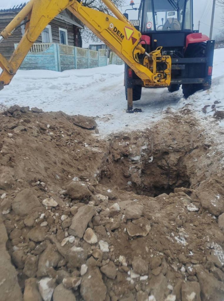 Вчера работники водоканала снова выезжали в агрогородок и занимались устранением проблемы: участок раскопан (грунт промерз на 1,6 м). Работы по разогреву трубы продолжались и сегодня.