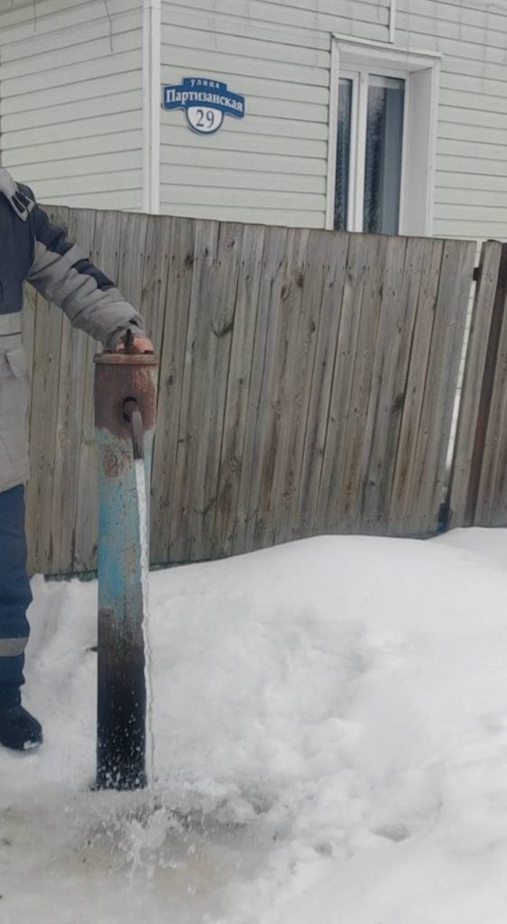Сегодня работники водоканала продолжили работать над отогревом трубы. Их старания принесли плоды – водоснабжение в агрогородке налажено.