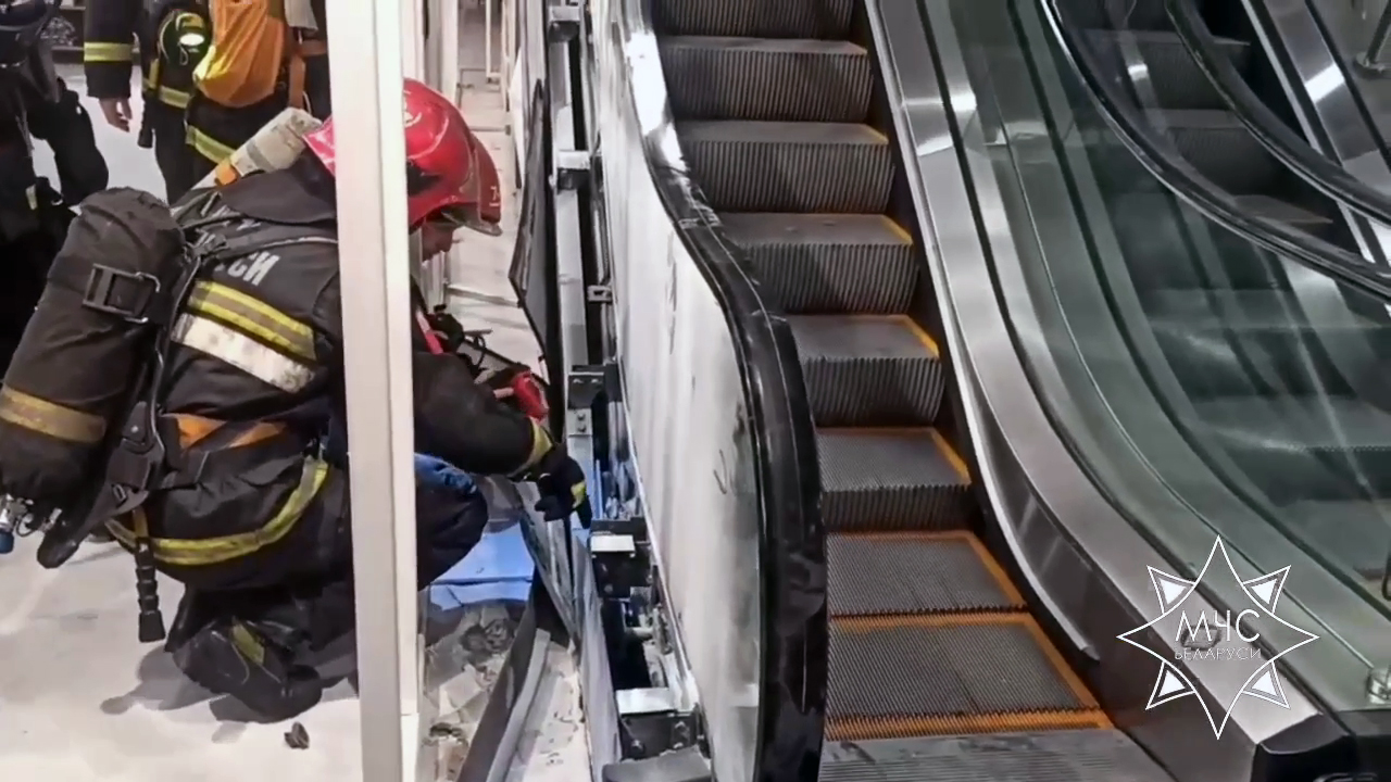 Предварительно установлено, что произошло загорание электропроводки экскалатора в здании ТЦ.