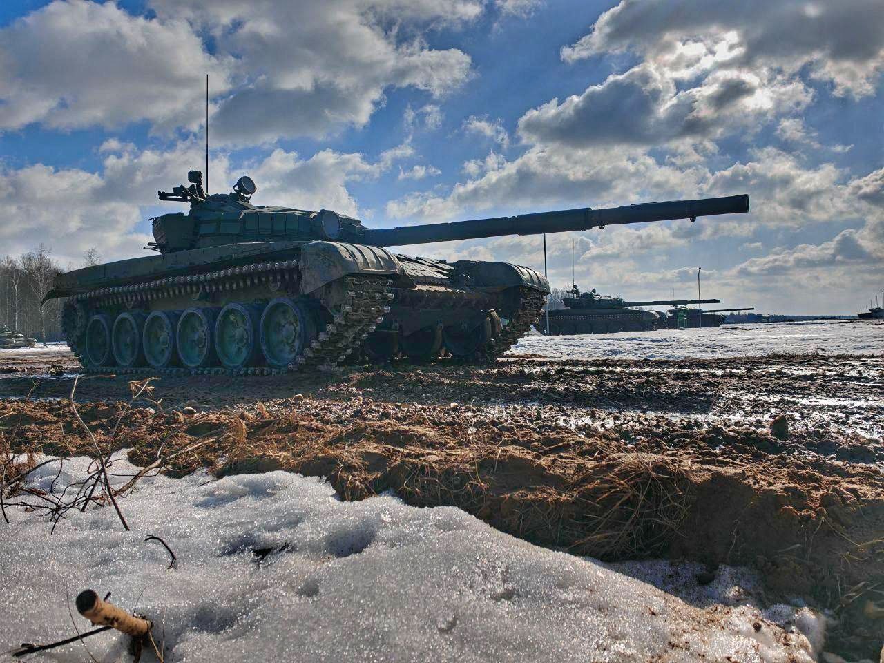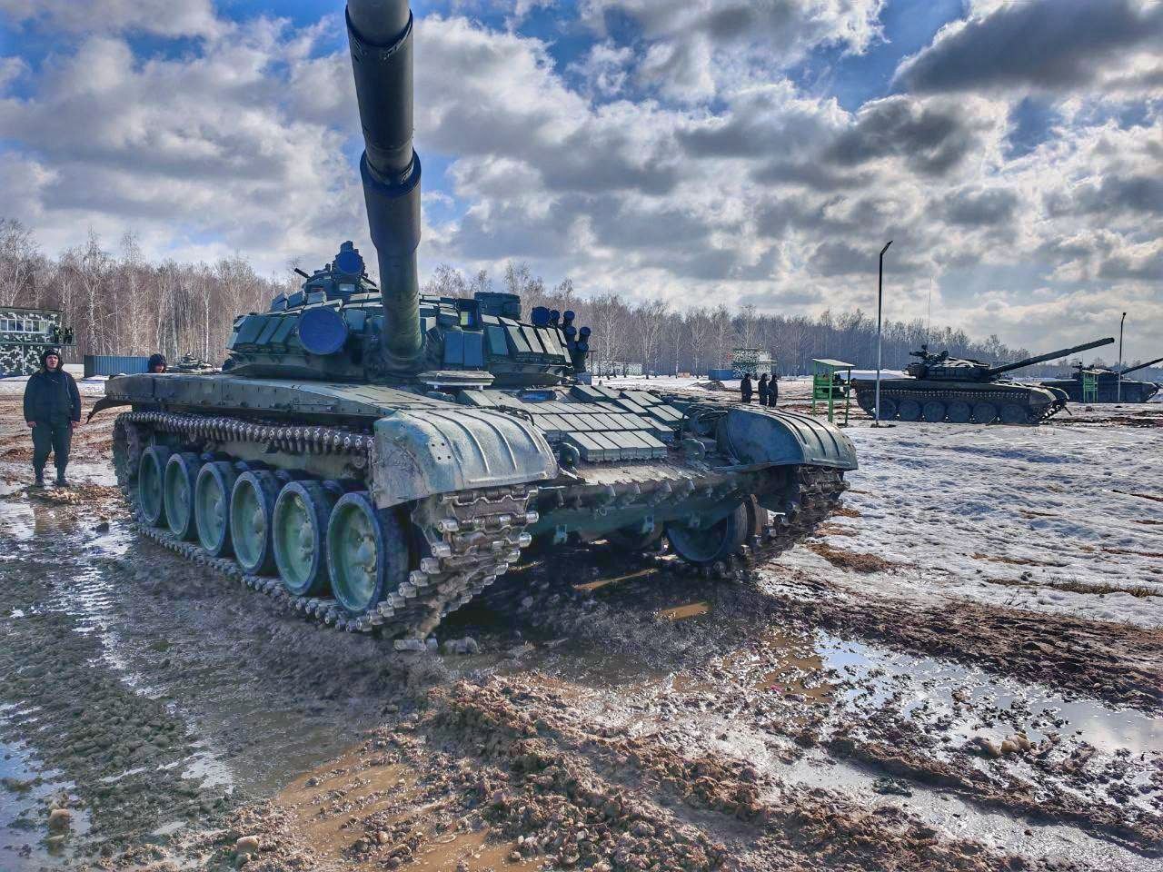 Военнослужащие танковых подразделений 120-й отдельной гвардейской механизированной бригады выполняют упражнения контрольных стрельб штатным артиллерийским выстрелом из вооружения танка Т-72Б3 на 227-м общевойсковом полигоне.