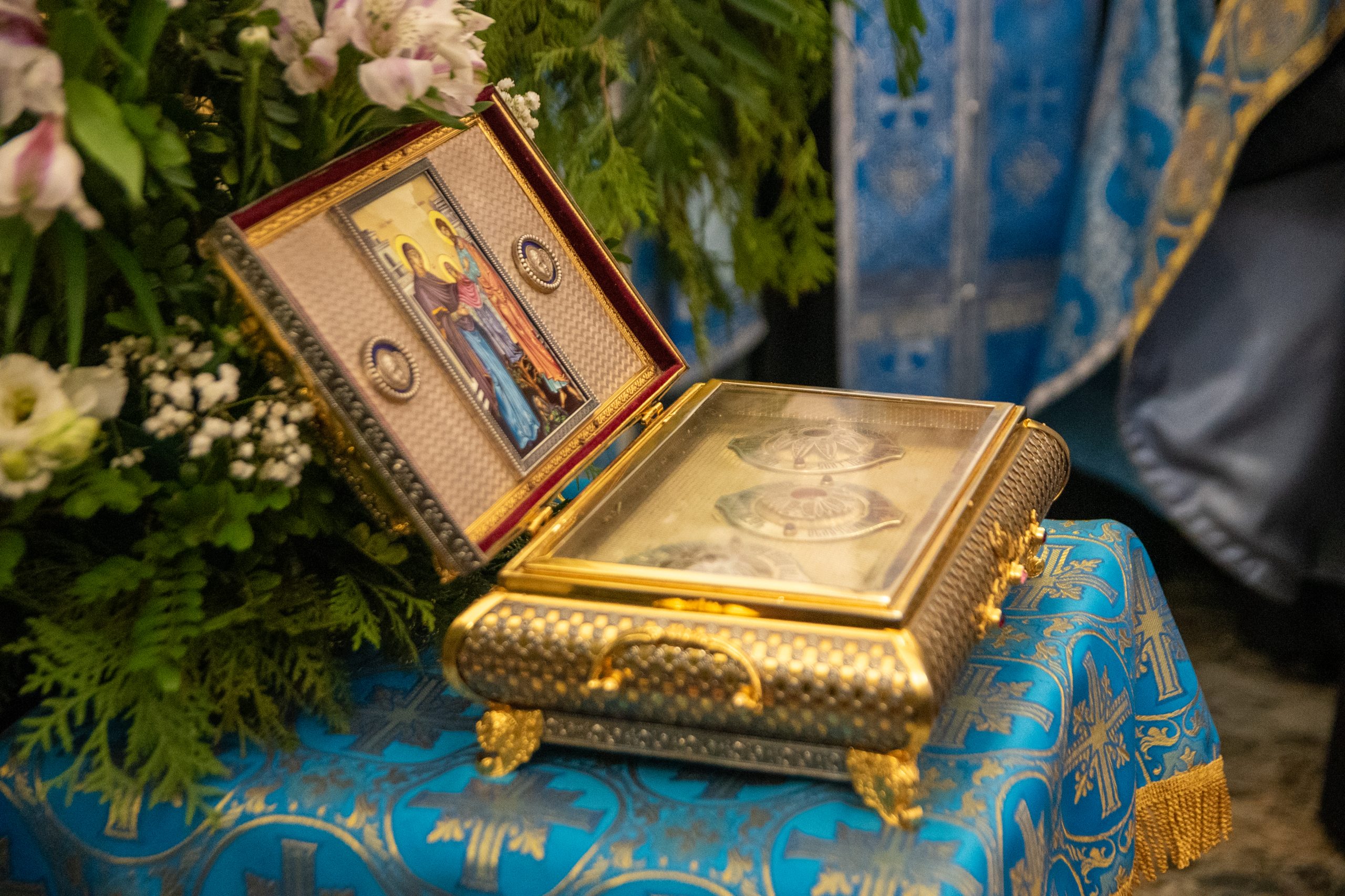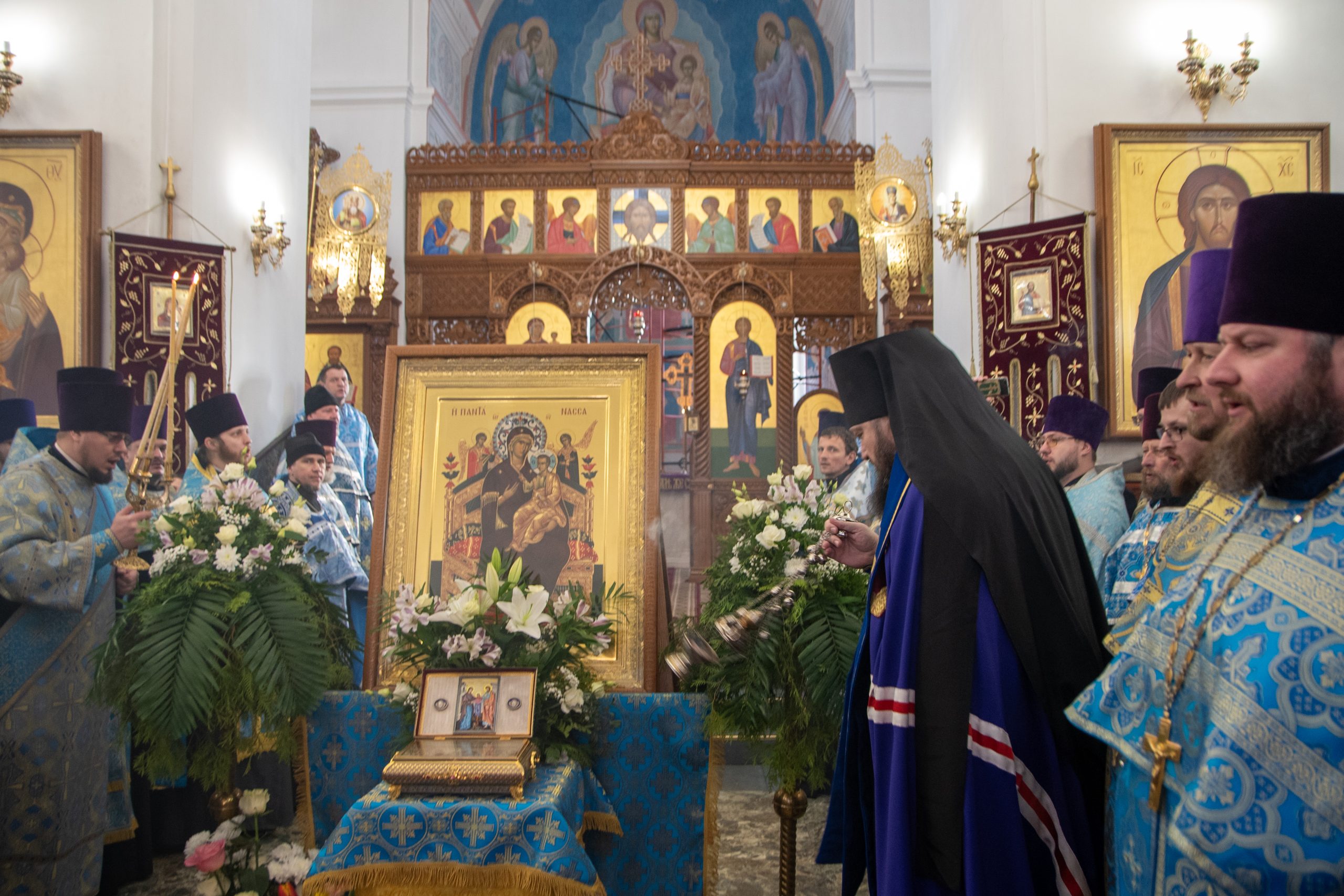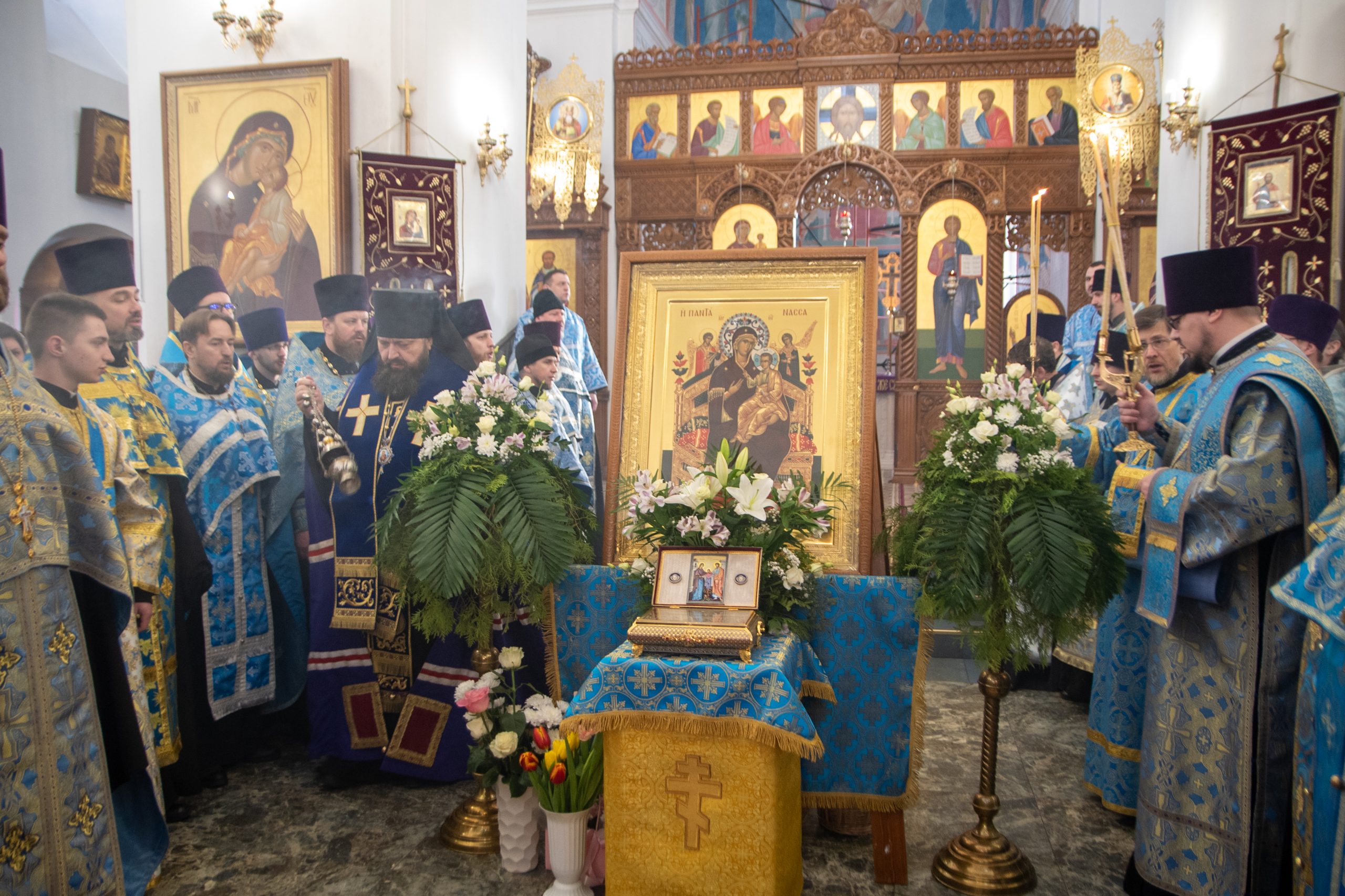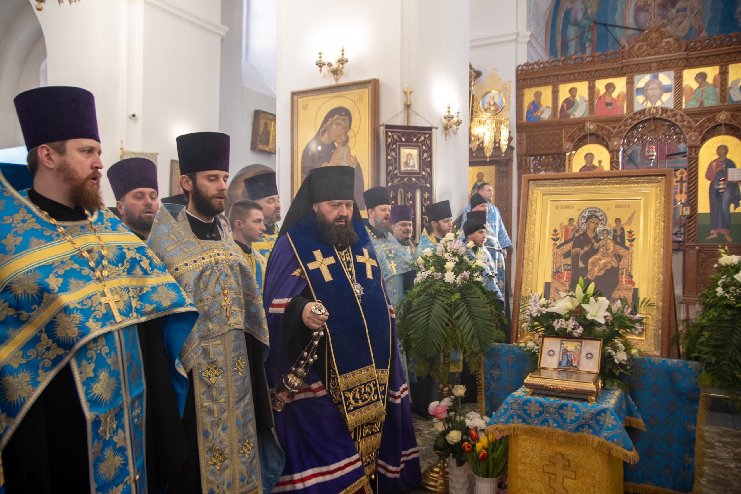 После принесения ковчега в кафедральный собор было совершено молебное пение с чтением канона ко Пресвятой Богородице.