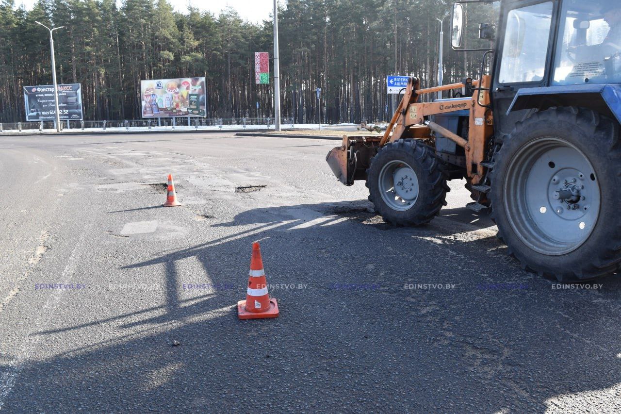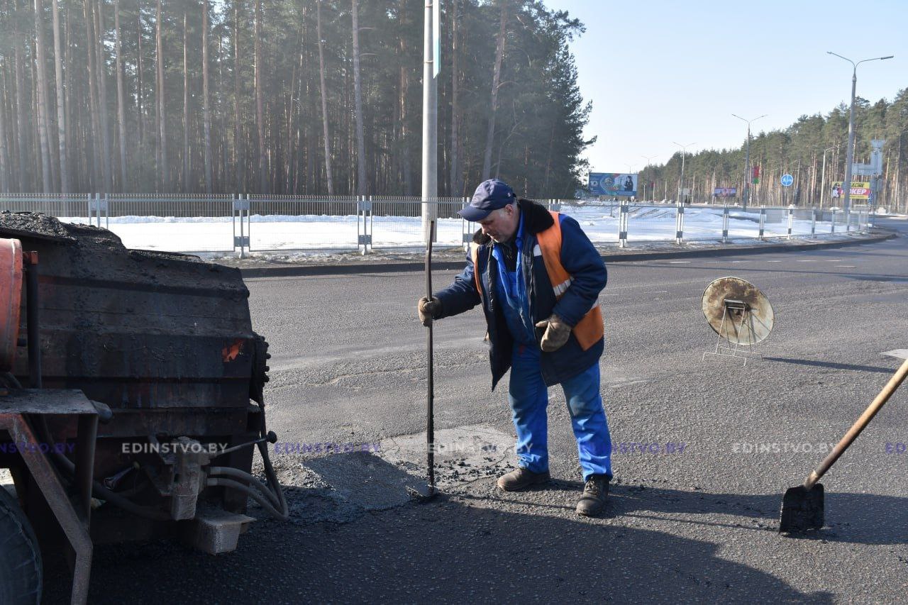С наступлением благоприятных погодных условий работники УП «Жилье» приступили к ямочному ремонту главной автомагистрали города. Сегодня ремонтные работы проводить на кольце на въезде в Борисов со стороны Минска.