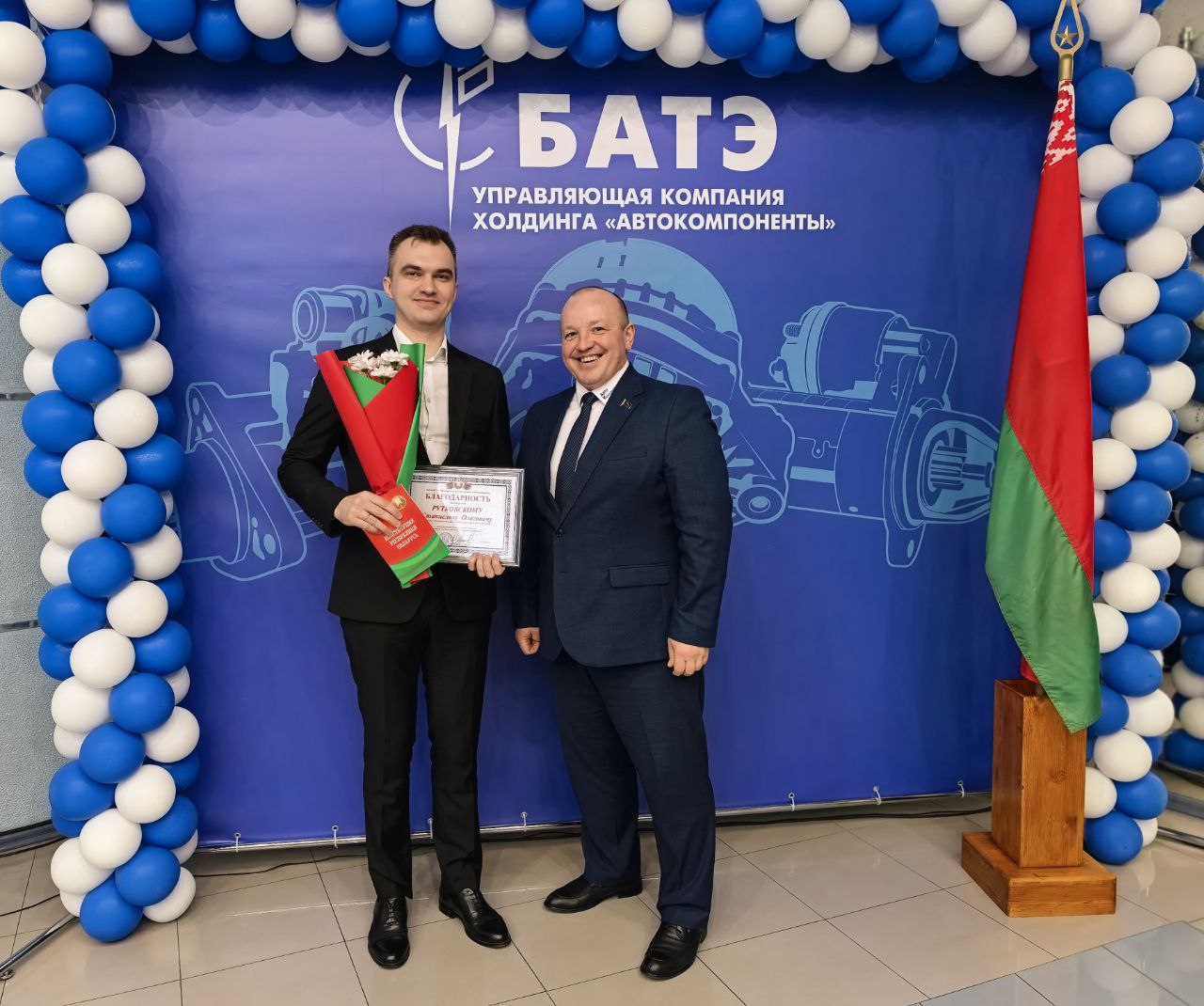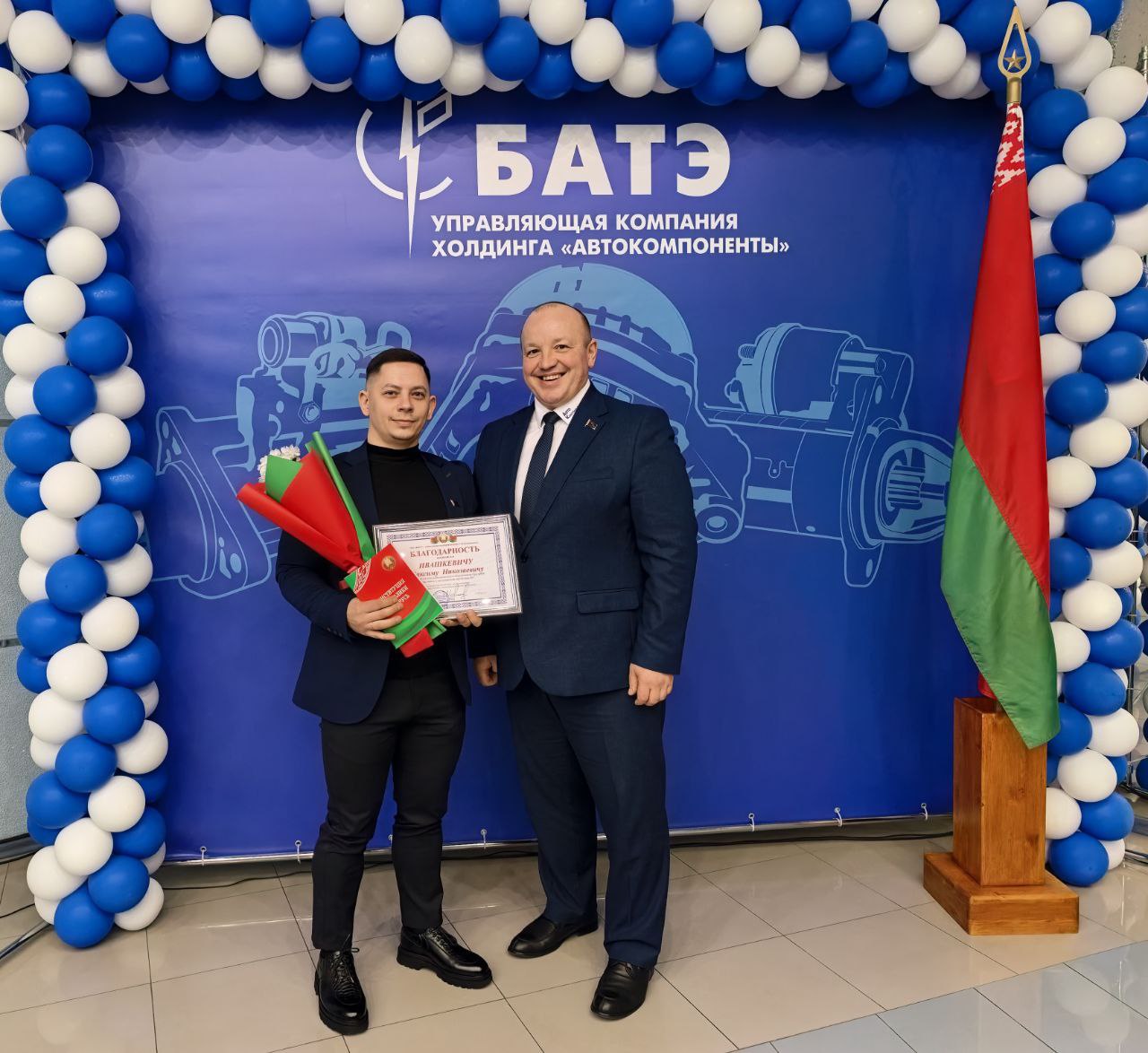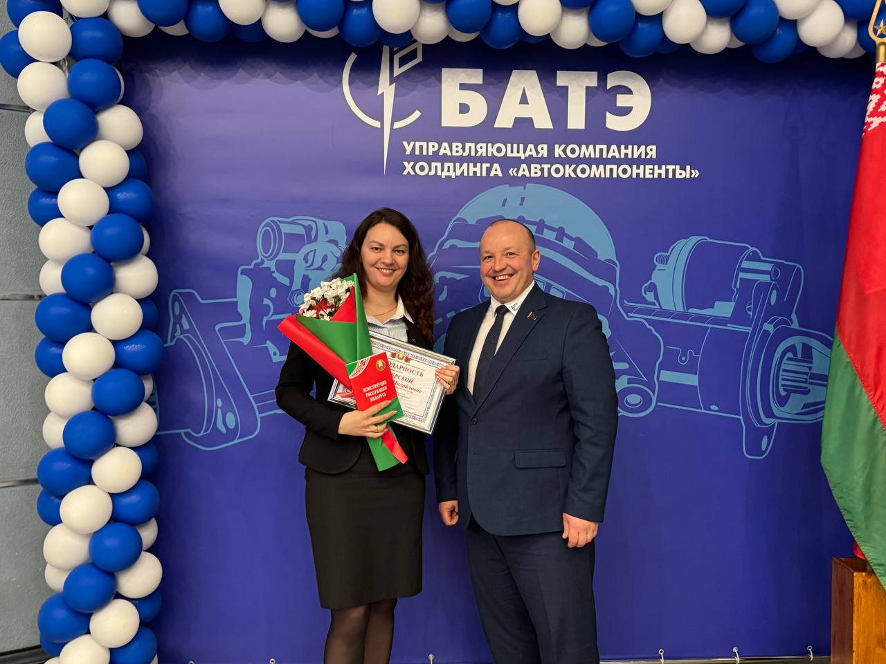 В мероприятии принял участие генеральный директор ОАО «БАТЭ» – управляющая компания холдинга «Автокомпоненты» Александр Марченко. Он обратился к собравшимся с тёплыми словами поздравления. Александр Анатольевич подчеркнул значимость Конституции как основы стабильности и процветания нашей страны, а также выразил уверенность в том, что работники нашего предприятия, как более старшее поколение, так и молодежь, воспитанные на принципах уважения к закону и патриотизму, будут достойно продолжать славные традиции Беларуси.