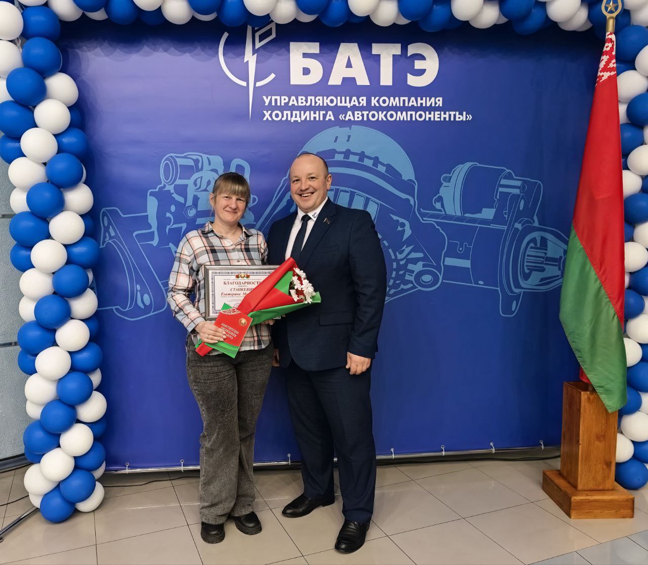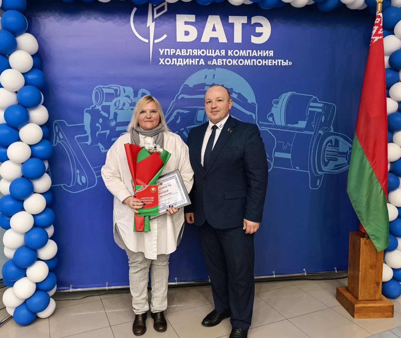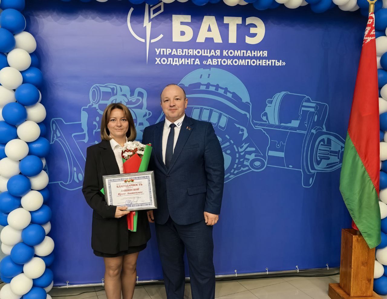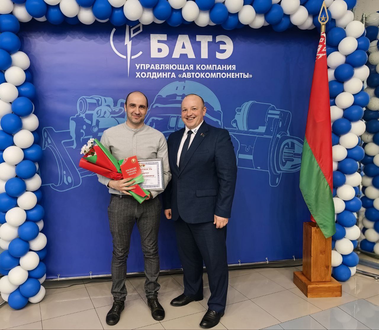 В мероприятии принял участие генеральный директор ОАО «БАТЭ» – управляющая компания холдинга «Автокомпоненты» Александр Марченко. Он обратился к собравшимся с тёплыми словами поздравления. Александр Анатольевич подчеркнул значимость Конституции как основы стабильности и процветания нашей страны, а также выразил уверенность в том, что работники нашего предприятия, как более старшее поколение, так и молодежь, воспитанные на принципах уважения к закону и патриотизму, будут достойно продолжать славные традиции Беларуси.