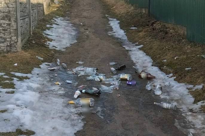 ТикТок-пользовательница выложила в сеть ролик, в котором, как подснежники, вдоль забора в ряд лежат пустые бутылки – следы веселого время препровождения. Люди, где пили, там тару и оставили.