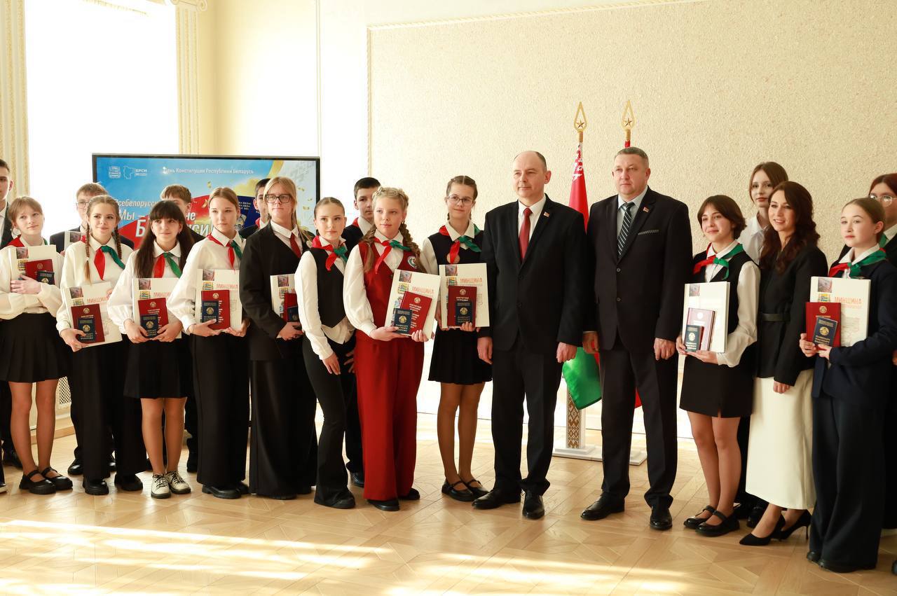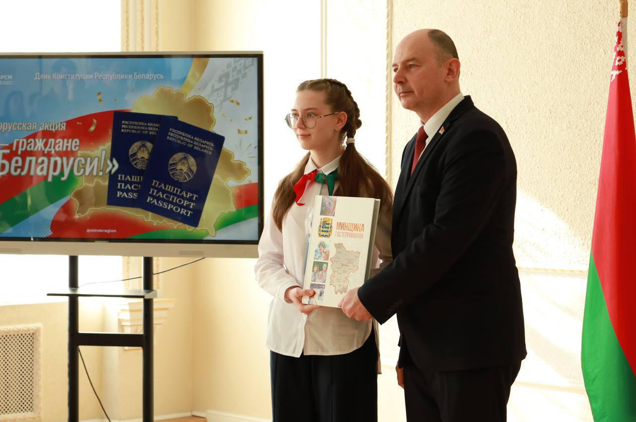 Вместе с самым главным документом участникам церемонии торжественно вручили Конституцию Республики Беларусь, а также экземпляр книги «Минщина гостеприимная» и сувенир от Союза молодежи!