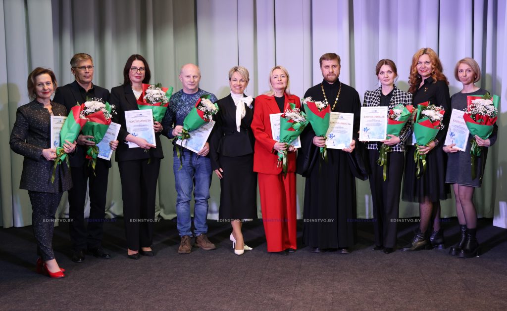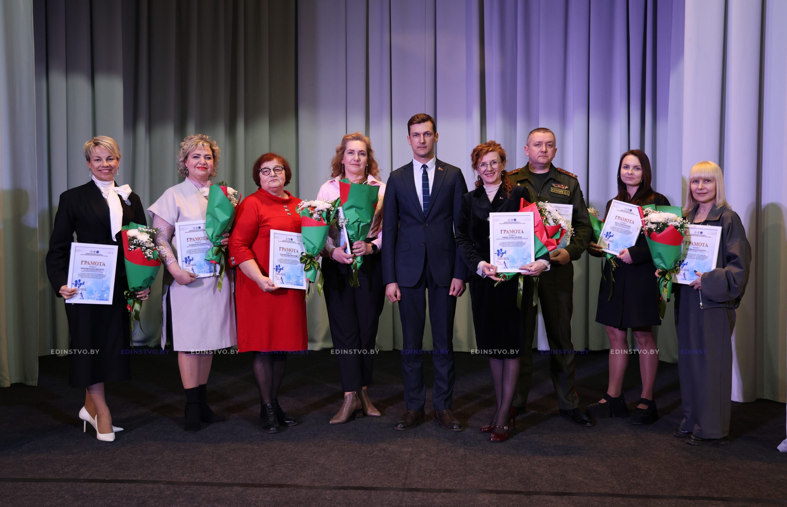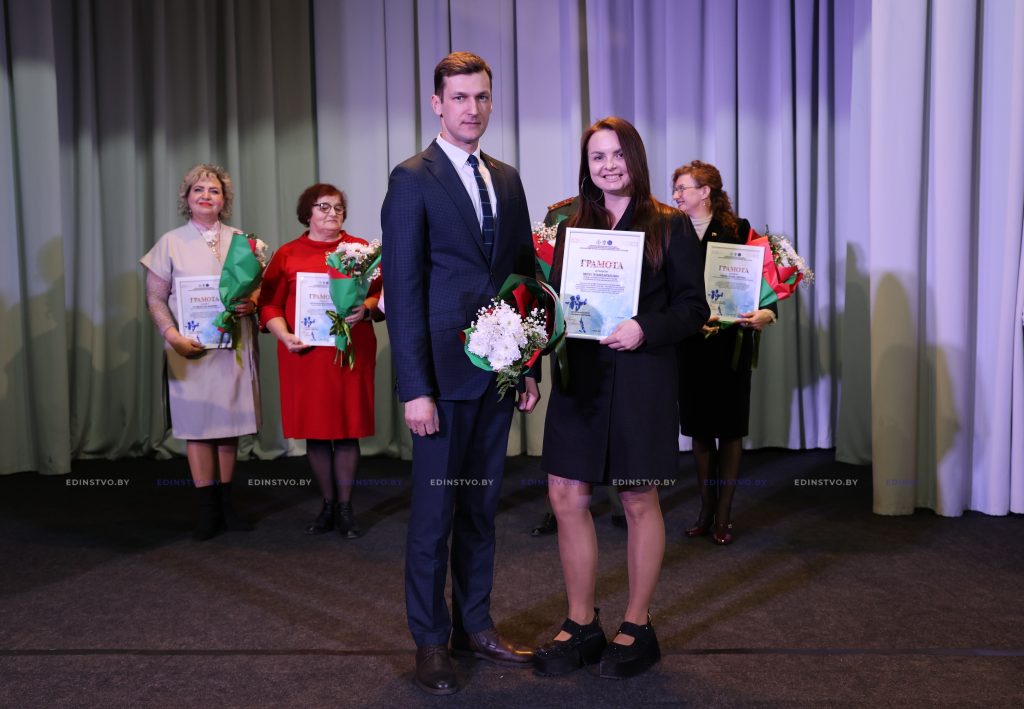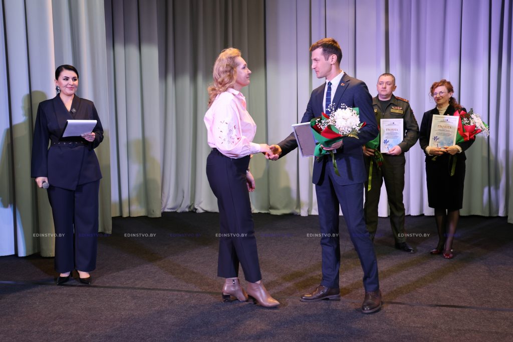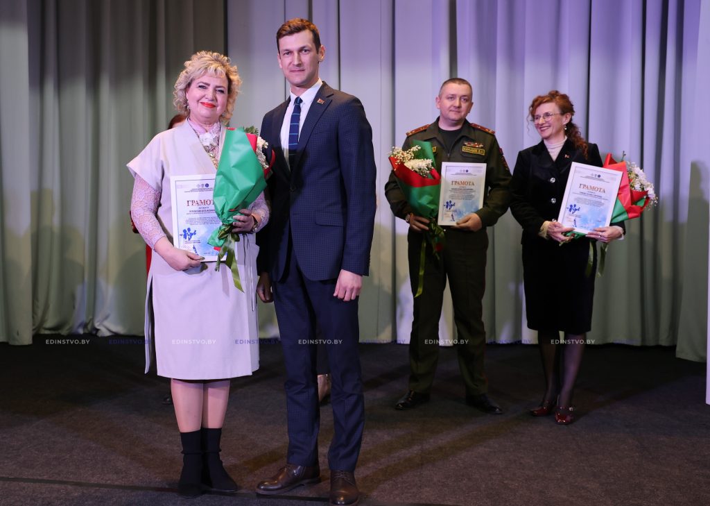 За высокое профессиональное мастерство, плодотворную деятельность, значительный вклад в патриотическое воспитание молодежи, преданность своему делу Грамота вручена начальнику отдела идеологической работы и по делам молодежи Борисовского районного исполнительного комитета Татьяне Чуйковой, заместителю начальника центра по идеологической работе – начальнику отделения идеологической работы 72 гвардейского объединенного учебного центра подготовки прапорщиков и младших специалистов Денису Канышеву, заместителю директора по учебно-воспитательной работе государственного учреждения образования «Борисовская детская хореографическая школа искусств» Антонине Головановой, помощнику Благочинного Борисовского церковного округа Валентине Шутко Николаевне, директору государственного учреждения образования «Борисовская детская хореографическая школа искусств» Алле Рутковской; руководителю народного эстрадного оркестра «Джайв» государственного учреждения образования «Борисовская детская музыкальная школа искусств» Татьяне Пиотух, директору государственного учреждения образования «Средняя школа № 25 г. Борисова» Ольге Шеляпиной, председателю Борисовской районной организации Профсоюза работников государственных и других учреждений Наталье Сильченко.