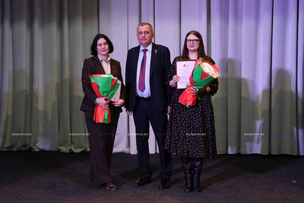 За значительный вклад в развитие женского движения, содействие повышению роли женщин в общественно-политической, социально-экономической, культурной жизни Борисовского региона Благодарность Борисовской районной организации Белорусского союза женщин вручена главному специалисту по идеологической работе филиала «Здравушка-милк» открытого акционерного общества «Слуцкий сыродельный комбинат» Ирине Латушкиной; заместителю руководителя организации по идеологической работе государственного опытного лесохозяйственного учреждения «Борисовский опытный лесхоз» Анне Окуневич.