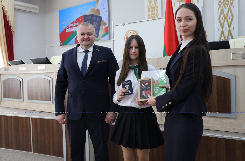 Паспорта ребятам, которые активно проявляют свою жизненную позицию и любовь к Родине, вручили председатель Борисовского районного исполнительного комитета Николай Карпович и прокурор Борисовского района Дмитрий Макаревич.