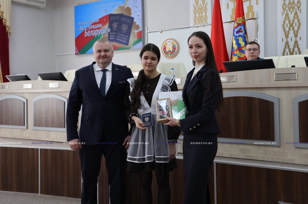 — Получение паспорта — важный шаг во взрослую жизнь, символ нашей ответственности перед государством и обществом. Для меня большая честь получить паспорт из рук председателя Борисовского райисполкома. Мы, юное поколение, готовы учиться, развиваться и трудиться на благо родной земли. Будем соблюдать законы, участвовать в общественной жизни, уважать старших и заботиться о младших. Спасибо за веру в нас. Мы не подведем!