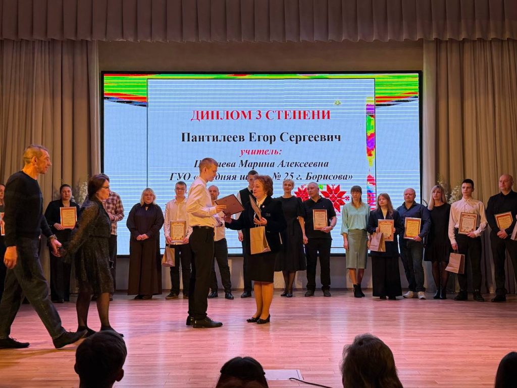 Сегодня в средней школе №25 г. Борисова прошла торжественная церемония награждения победителей третьего этапа республиканской олимпиады по учебным предметам и областного этапа республиканского конкурса работ исследовательского характера.
