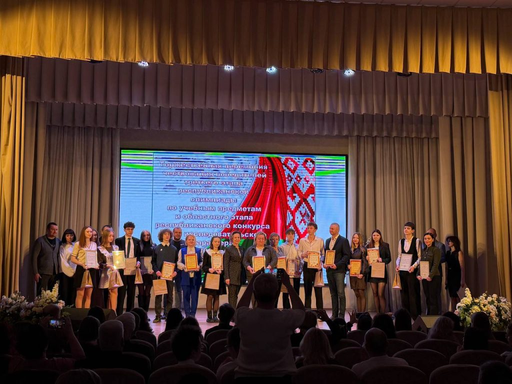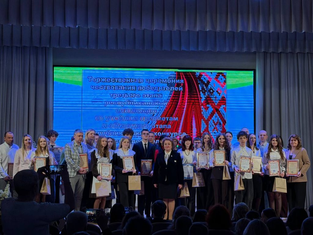 За наградами на сцену поднимались победители олимпиады по учебному предмету «Математика» – Михаил Самцевич (гимназия № 3), Артём Барашко (гимназия № 1), Владислав Монич (Лошницкая гимназия), Анна Полубинская (СШ № 20 г), Софья Будько (СШ № 9), по учебному предмету «Информатика» – Андрей Петрович (гимназия № 1), Владимир Ивженко (СШ № 16), Кирилл Кухто (гимназия № 1), по учебному предмету «Физика» – Матвей Мармузевич (СШ № 25), Елизавета Чичина (гимназия № 1), Маргарита Банникова (гимназия № 1), Алексей Бусел (гимназия № 1), Никита Саркисян (гимназия № 1), Егор Загайнов (гимназия № 1), Мирослав Мальцев (гимназия № 3), Всеволод Холин (гимназия № 1), Виктория Мигутская (гимназия № 1), Александр Гречуха (гимназия № 1), по учебному предмету «Астрономия» – Полина Левкович (гимназия № 1), Глеб Сытик (гимназия № 1), по учебному предмету «Химия» – Алина Коледа (СШ № 23), Иван Автюшков (гимназия № 1), Константин Белов (СШ № 7), Алина Урбанович (гимназия № 3), Арина Токарева (СШ № 9), Дмитрий Анишкевич (гимназия № 3), Анна Садовская (СШ № 2), Артём Мудрецов (белорусскоязычная гимназия № 2), по учебному предмету «Биология» – Ярослав Колачинский (СШ №23), Анастасия Клименок (гимназия № 3), Дарья Щепкова (Лошницкая гимназия), по учебному предмету «География» – Елена Николаенкова (гимназия № 1), Арсений Макрицкий (СШ № 23), Мария Панковец (СШ №20), Елизавета Качан (гимназия № 3), Полина Шишко (СШ № 23), по учебному предмету «Всемирная история», «История Беларуси», «История Беларуси в контексте всемирной истории» – Елисей Угрюмов (СШ № 16), Артур Силич (СШ № 22), Ульяна Сидлеренок (СШ № 10), Илья Денисов (гимназия № 3), по учебному предмету «Обществоведение» – Ульяна Батый (СШ № 18), Мария Янушкевич (Лошницкая гимназия), Дмитрий Гулай (гимназия № 1), Карина Коренько (СШ № 22), Иван Гречишников (гимназия № 1), Кира Бальшакова (СШ № 10), Егор Пантилеев (СШ № 25), по учебному предмету «Физическая культура и здоровье» – Анна Круглик (Лошницкая гимназия).