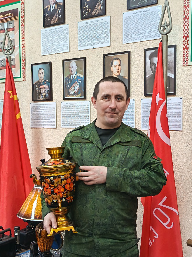 Эта философия воплощается в жизнь через посещение храмов, курсы основ православной культуры, участие личного состава в богослужениях. Для Сергея Вячеславовича это не формальность, а часть его собственного мировоззрения. Вне службы он — чтец в соборе Воскресения Христова в Борисове и пономарь в храме Александра Невского на своей малой родине, в агрогородке Крево Сморгонского района, за что отмечен церковными наградами. А в планах — заочная учеба в духовной семинарии.