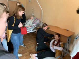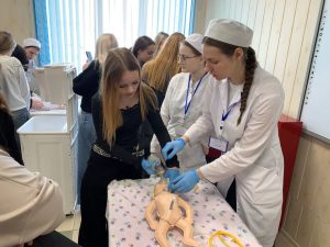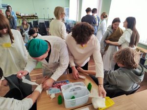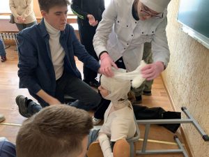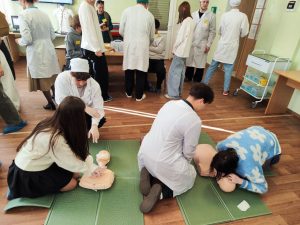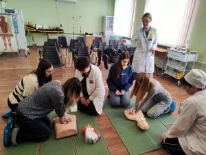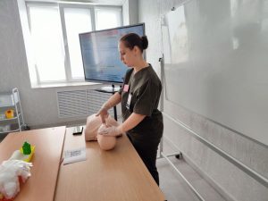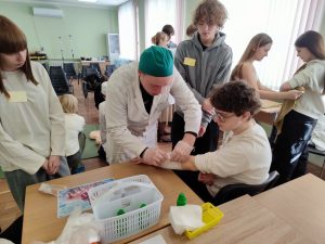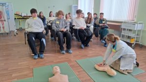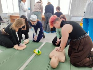 Во время практической части мероприятия учащиеся учреждений общего среднего образования под руководством преподавателей и обученных волонтеров колледжа отрабатывали практические навыки базовой сердечно-легочной реанимации, остановки наружного кровотечения и иммобилизации конечностей при травмах.