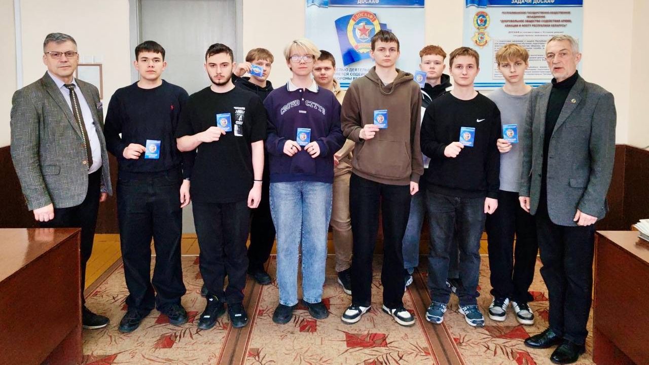 Учащиеся УО «Борисовский государственный технический колледж» узнали о деятельности оборонного Общества, получили членские билеты ДОСААФ и встретились с будущими военными водителями