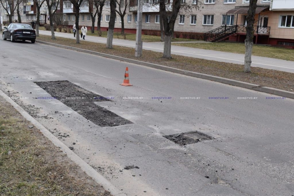 Устранение критической ямочности ведется на проезжей части от ул. Строителей в сторону перекрестка с ул. М. Горького. Дорожные рабочие готовят карты (вырезают поврежденные участки асфальта), которые затем заполняются разогретой в рециклере смесью. Эта установка позволяет проводить ямочный ремонт и при отрицательных температурах окружающего воздуха. Поэтому восстановление дорожного покрытия проводилось и зимой.