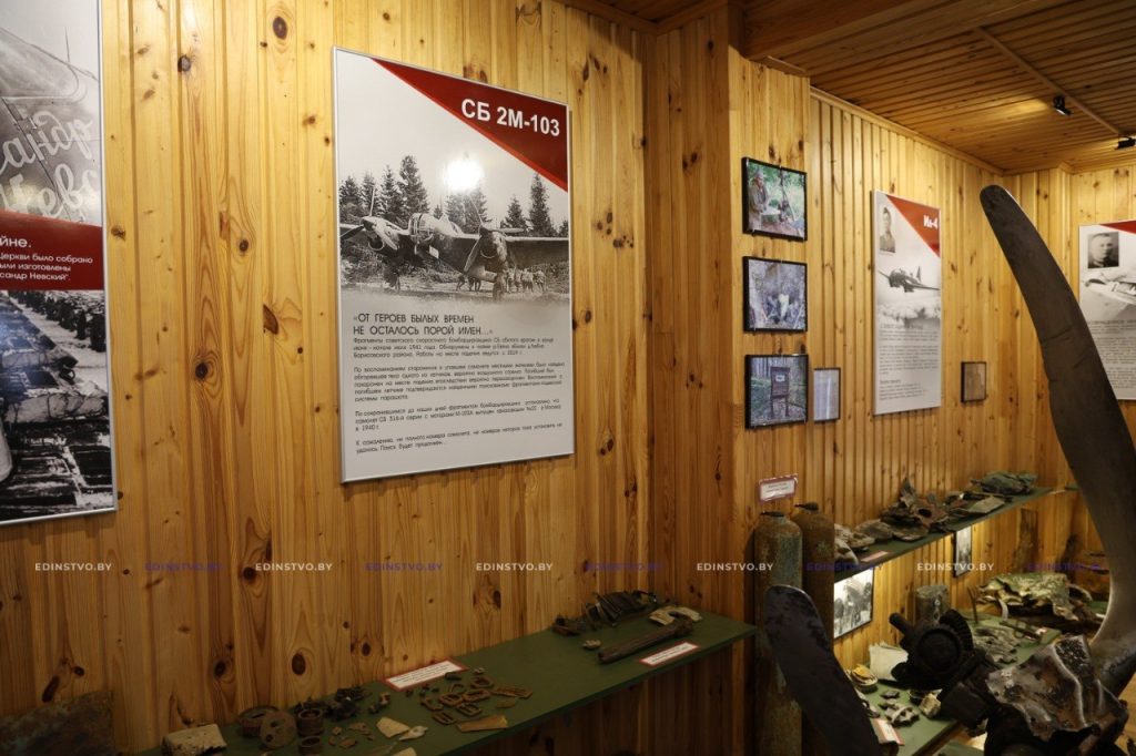 Гости посетили музей поднятых самолетов, где ознакомились с уникальными экспонатами, включая обломки авиационной техники времен Великой Отечественной войны, каждый из которых сопровождался подробной историей и информацией о героях, связанных с этими артефактами.