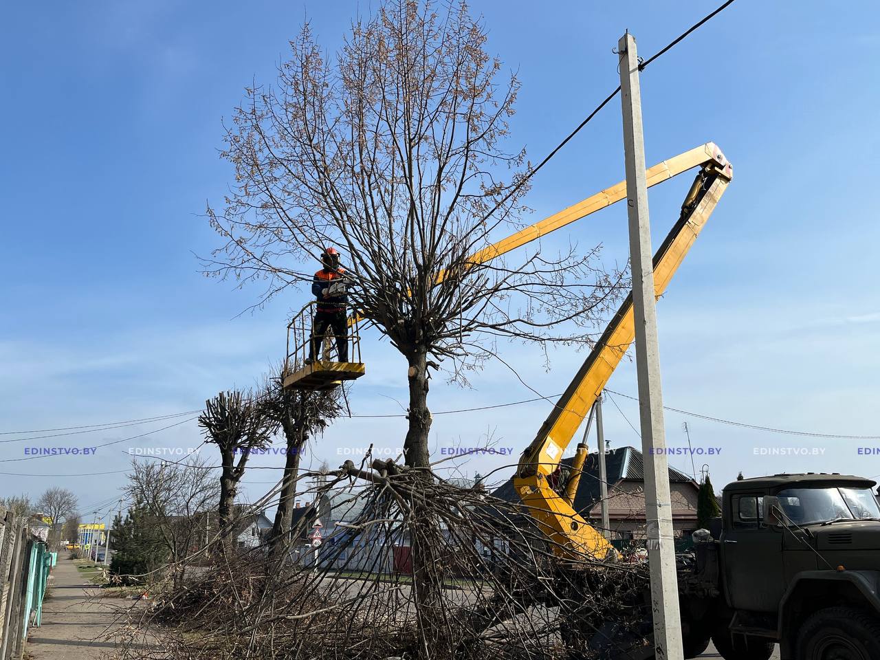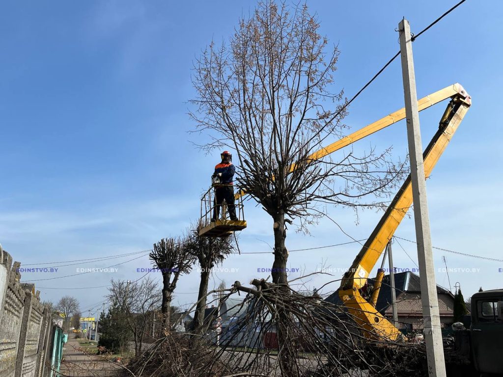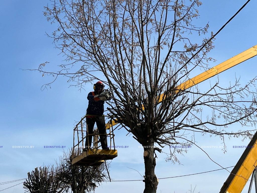 Параллельно на улице Ленинской велись работы по санитарной обрезке деревьев.