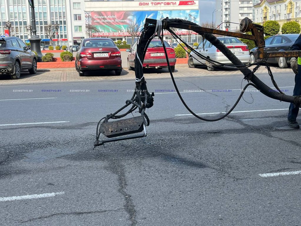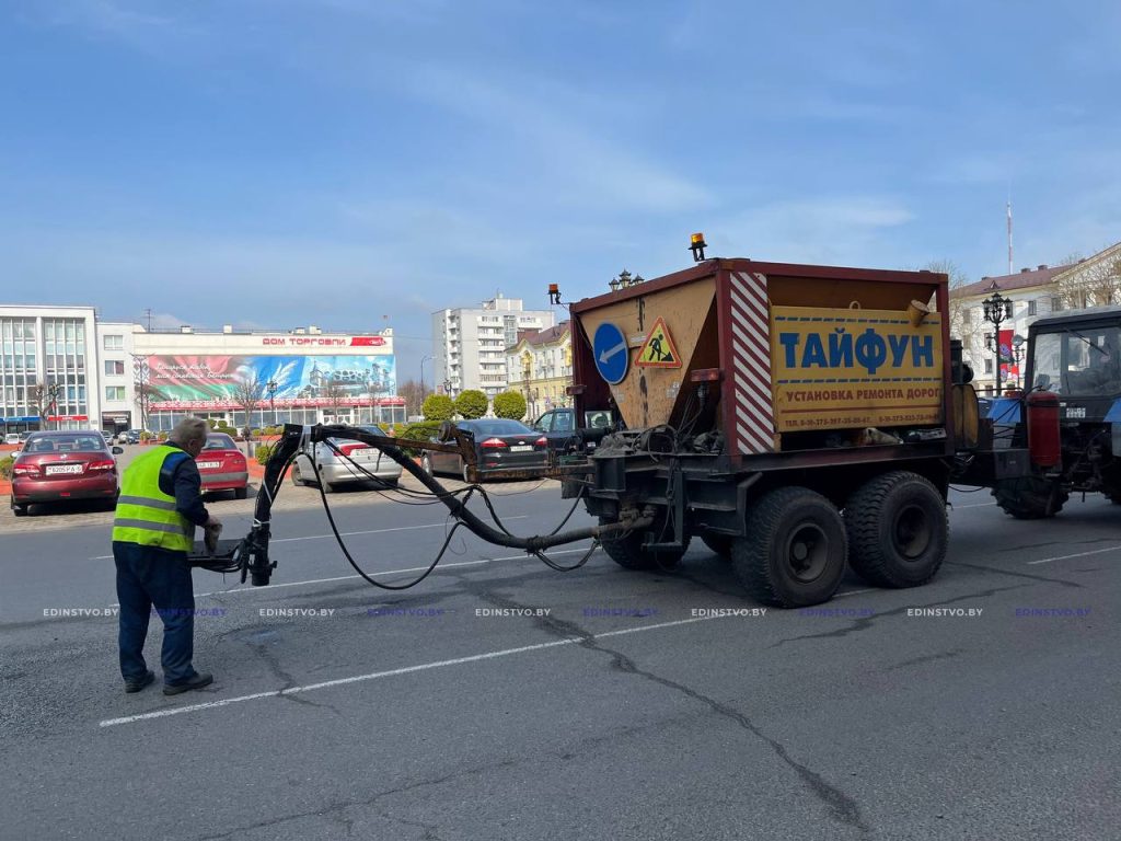 Сегодня на центральной площади и проспекте Революции проводились работы по приведению в порядок дорожного покрытия. Быстрый ремонт выполнялся с использованием установки ремонта дорог «Тайфун».