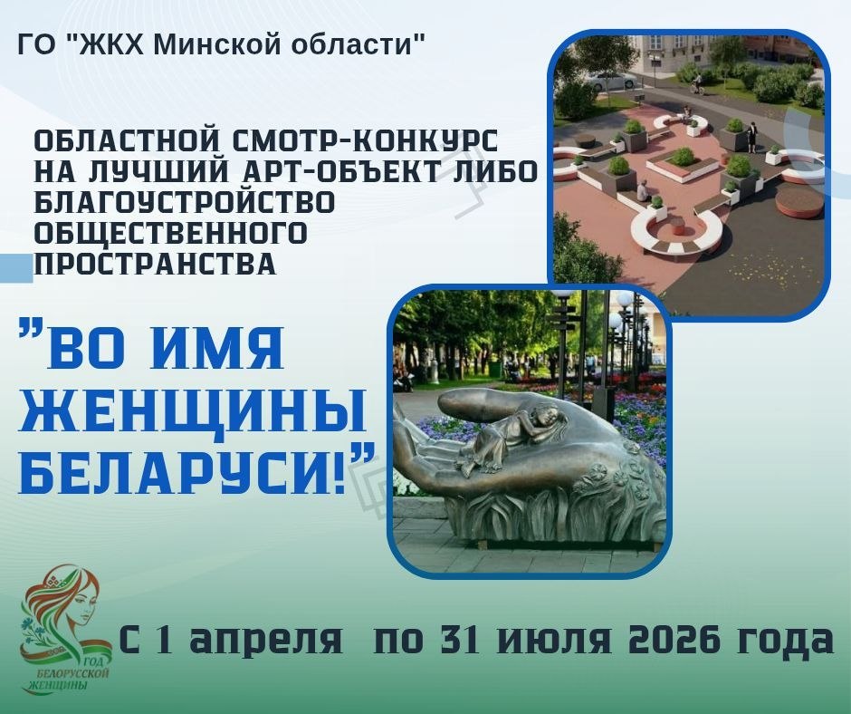 С 1 апреля начинается прием заявок на областной смотр-конкурс «Во имя женщины Беларуси», посвященный Году белорусской женщины и созданию лучших арт-объектов и благоустройству общественных пространств.
