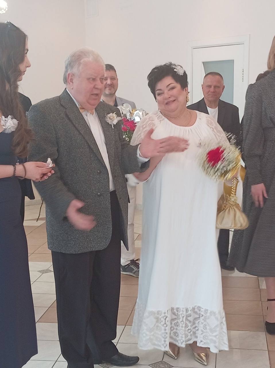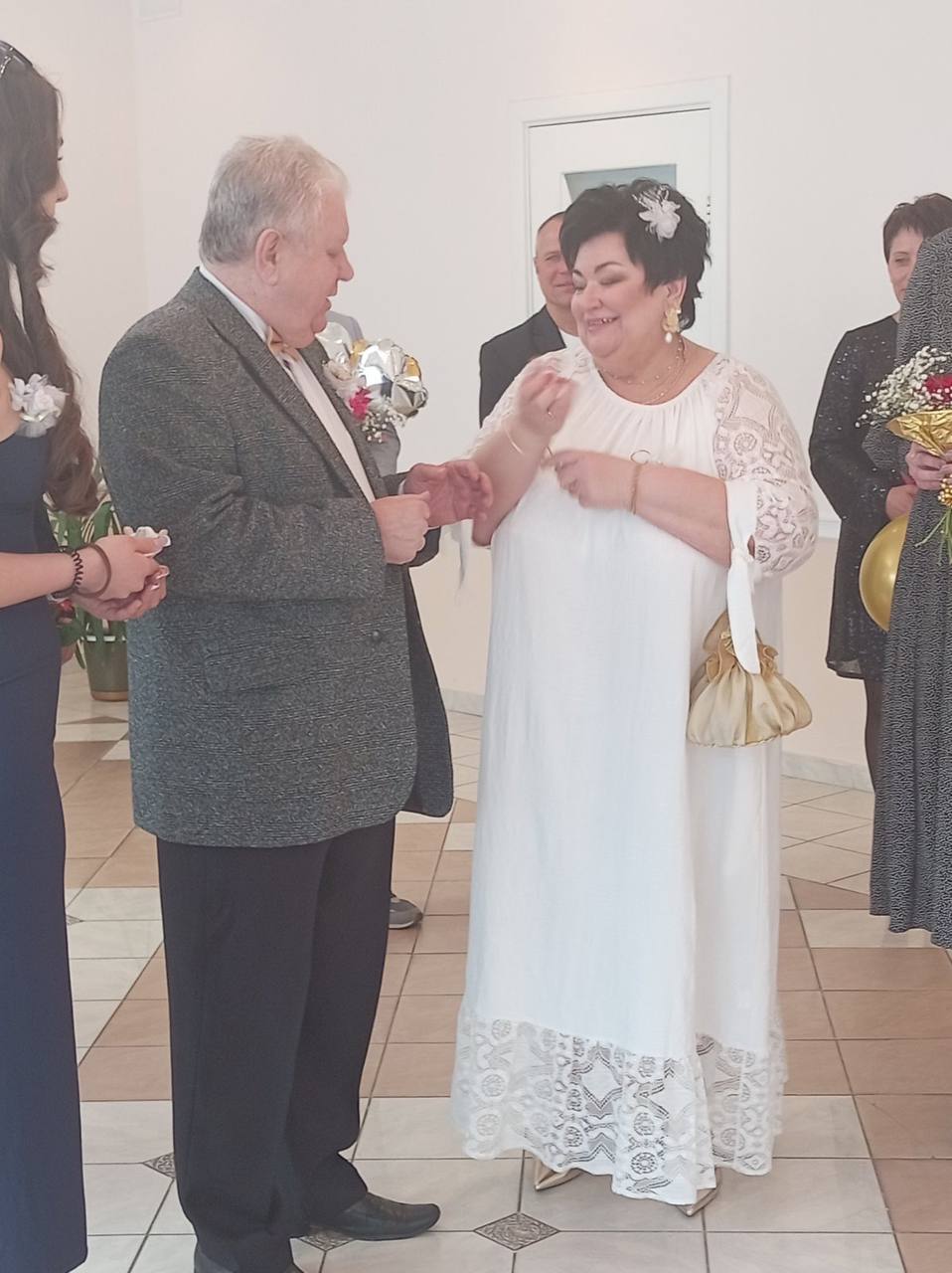 Под звуки марша Мендельсона, как и 50 лет назад, Светлана Анатольевна и Александр Владимирович вошли в зал для регистрации, обменялись кольцами, станцевали вальс и поставили свои подписи в книге золотых юбиляров.