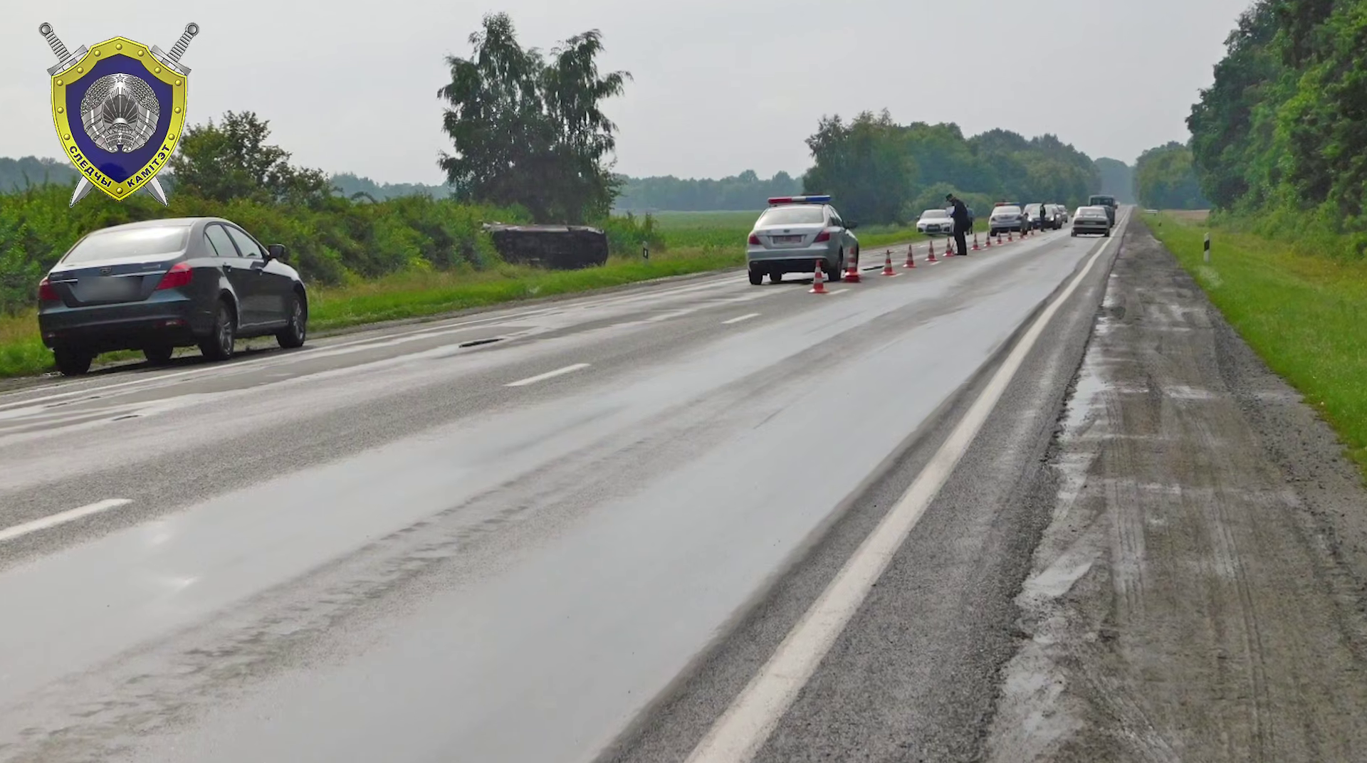 Установлено, что в момент ДТП шел дождь, а участок дороги, где водитель совершал обгон, имел колейность с лужами. Кроме того, пассажиры в момент аварии перевозились с непристегнутыми ремнями безопасности.