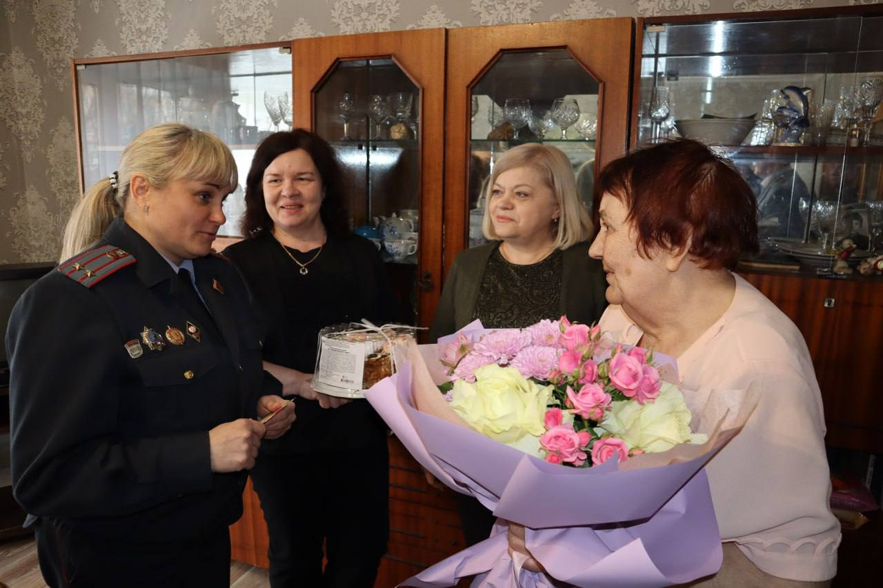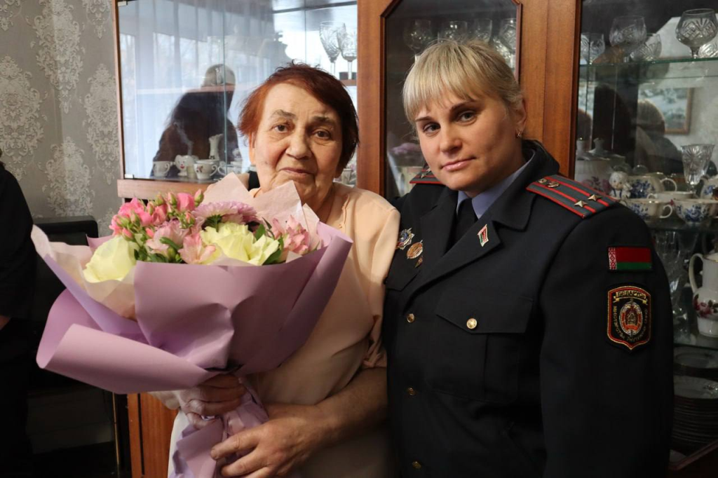 Цветы и поздравления принимала ветеран паспортно-визовой службы органов внутренних дел Ольга Плешевеня. Повод очень приятный: сегодня Ольга Васильевна отмечает 85-летие со дня рождения.