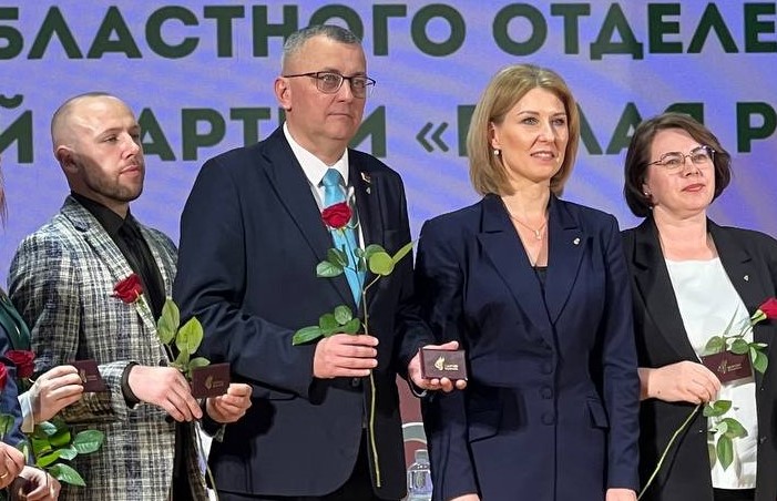 В торжественной обстановке председатель БП «Белая Русь» Ольга Чемоданова вручила Дмитрию Слонскому и другим партийным лидерами области удостоверения председателя районного отделения Минской области БП «Белая Русь».