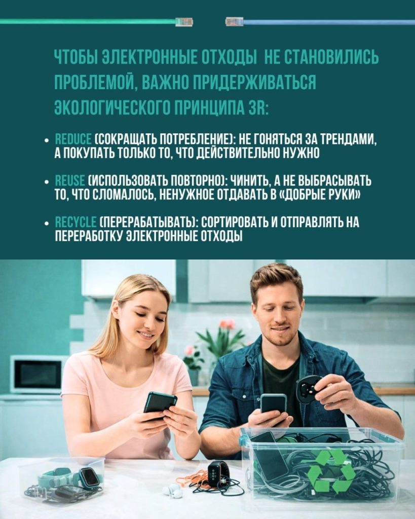 Напоминаем принцип 3R: Сокращай потребление (Reduce), Используй повторно (Reuse), Перерабатывай (Recycle).