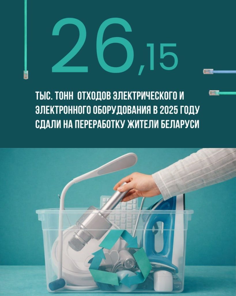 В 2025 году жители Беларуси сдали на переработку 26,15 тыс. тонн отходов электроники и электроприборов. В среднем по стране – 2,87 кг техники на человека. В 2015 году было всего лишь 420 граммов.