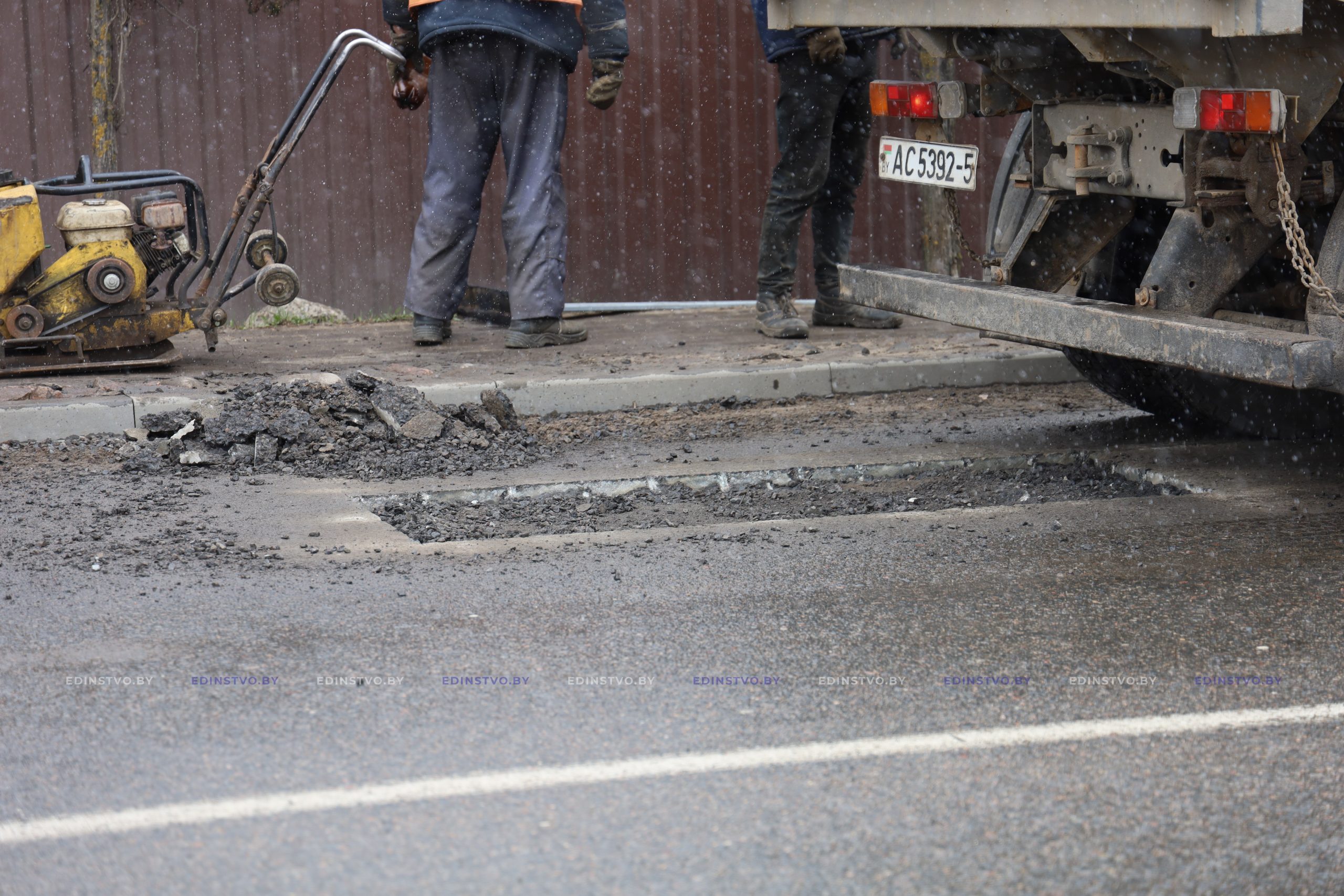 Не остался без внимания и ямочный ремонт. В Залинейном районе дорожные дефекты устраняли на улице Заводской — работы выполняли специалисты УП «Жилье». Ремонтные мероприятия продолжились и на улице Луговой.